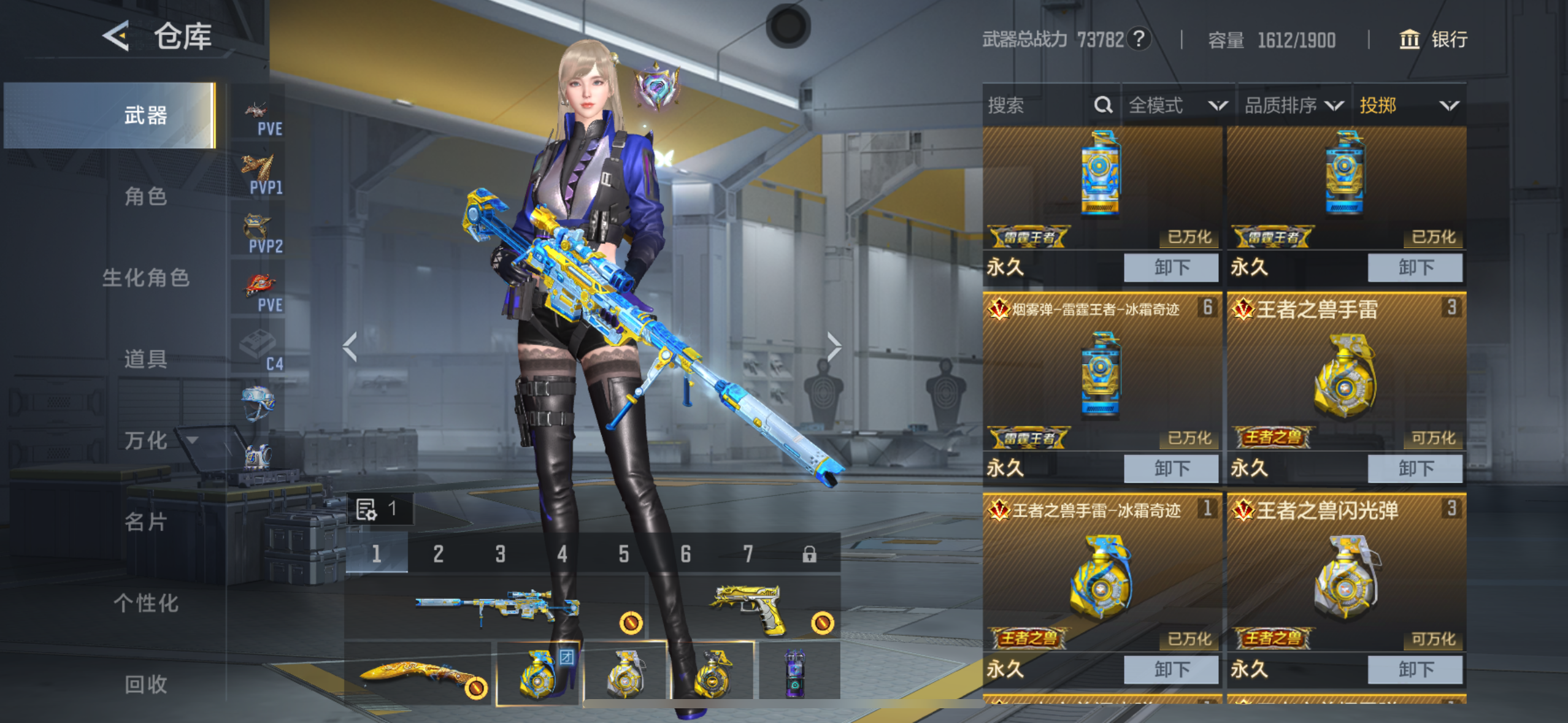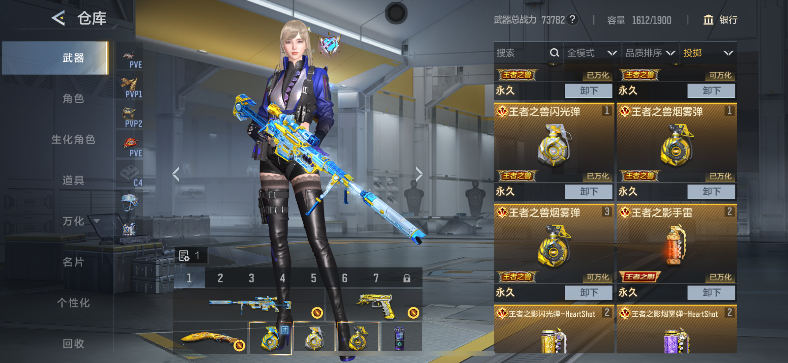 王幻 王势 王影 王心 王迹 王锋 王狱 王霆 权 太史慈 妙才 逆骨 游骑兵 奉先带无双 雷霆王者cop三国武器基本上都有 强势狙基本上也都有 雷霆王者手雷 王心手雷 王兽手雷 还有孟或400赏金币