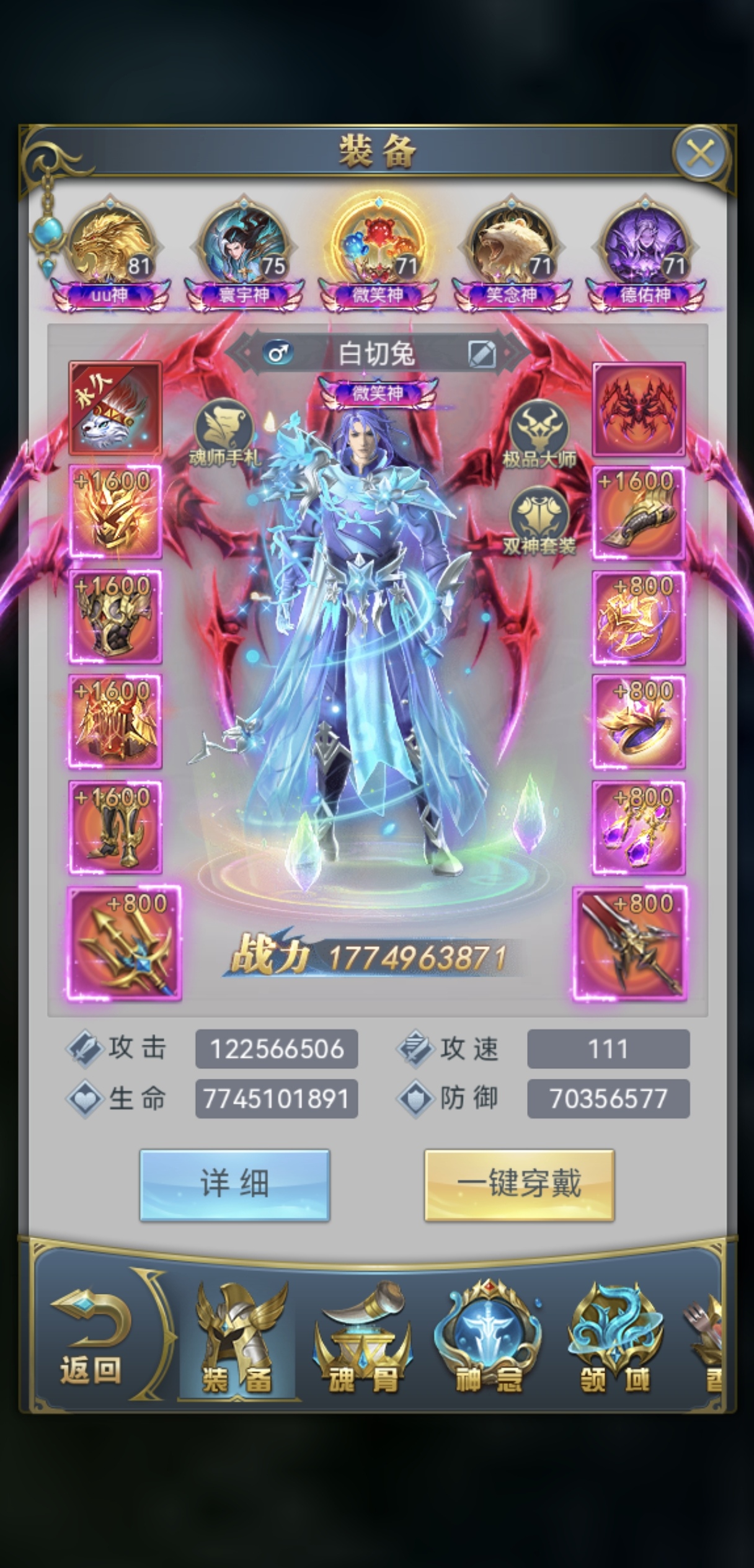 昊天百亿号,5454主城区,累充百万,满彩骨,中枢基本满