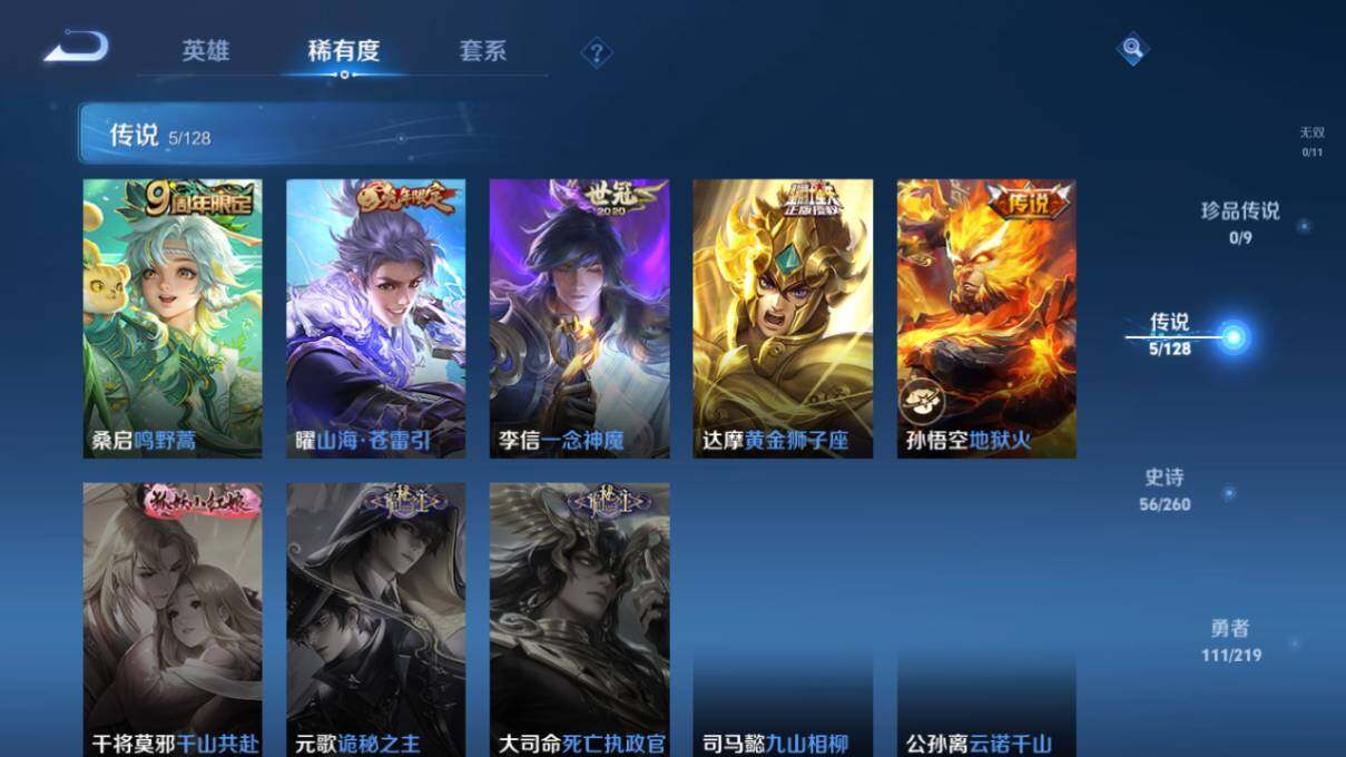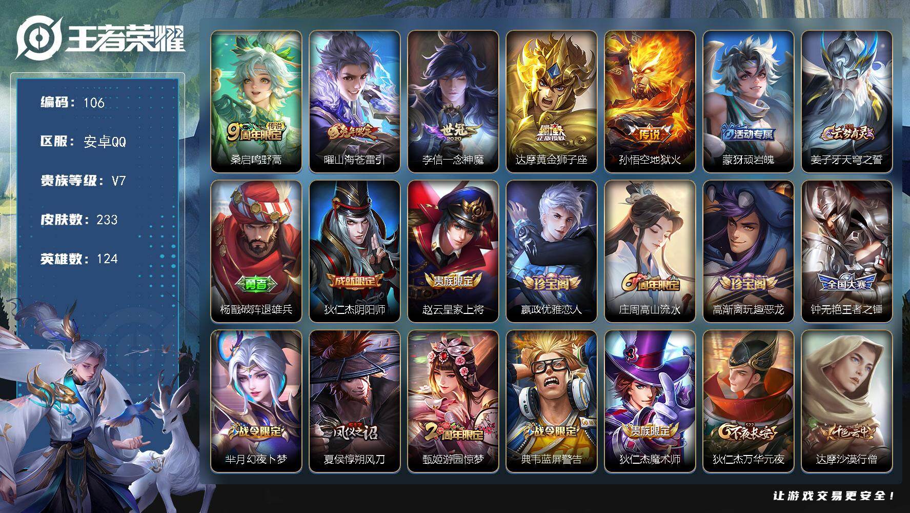 安卓Q-V7-124英雄-233皮肤-5传说-56史诗