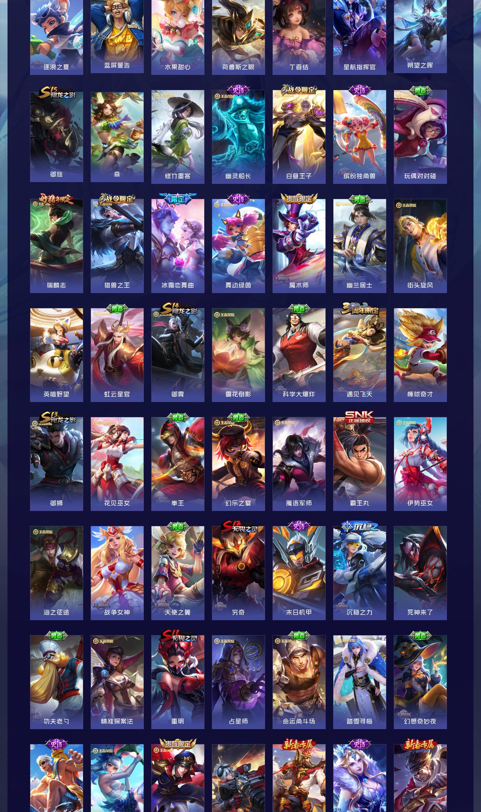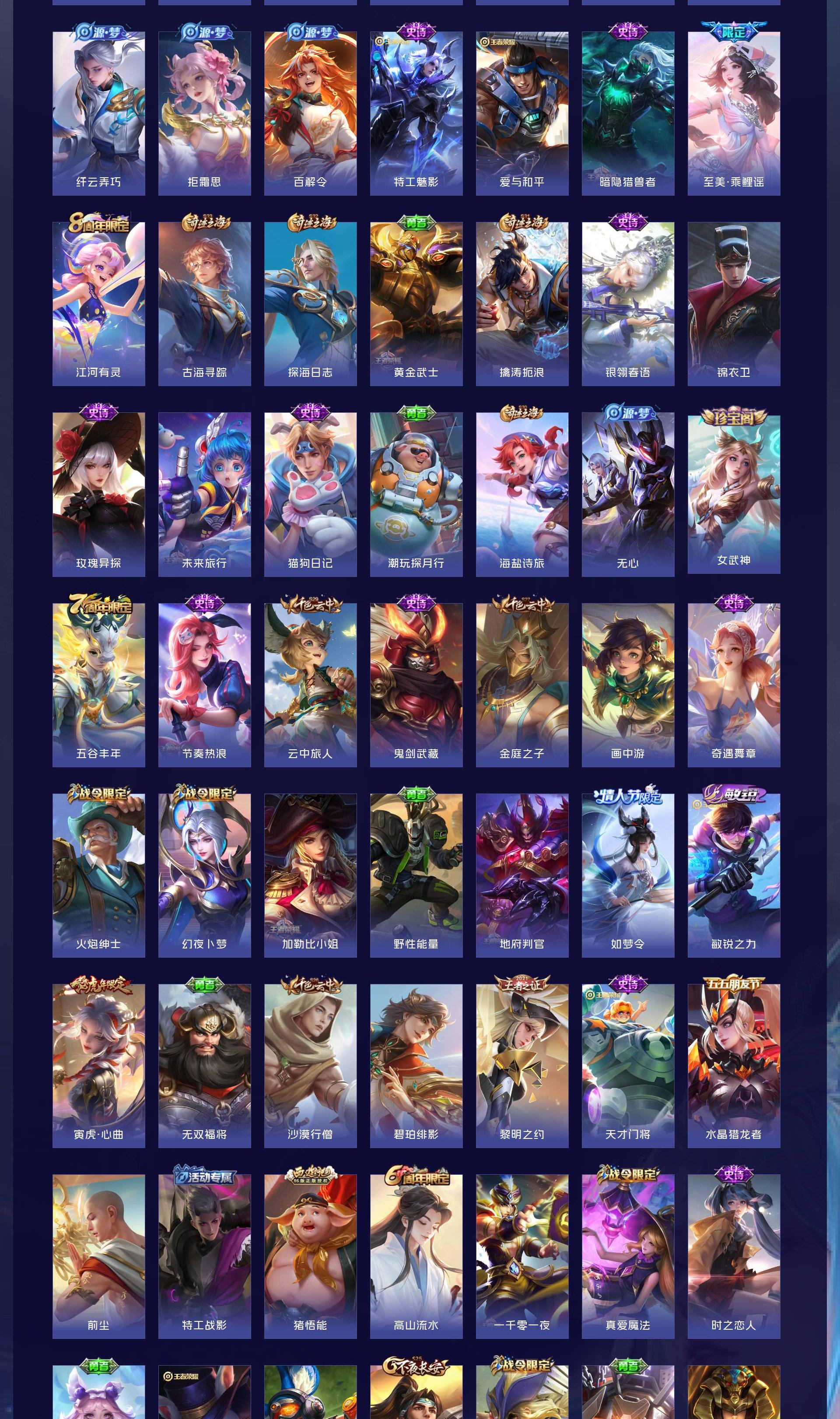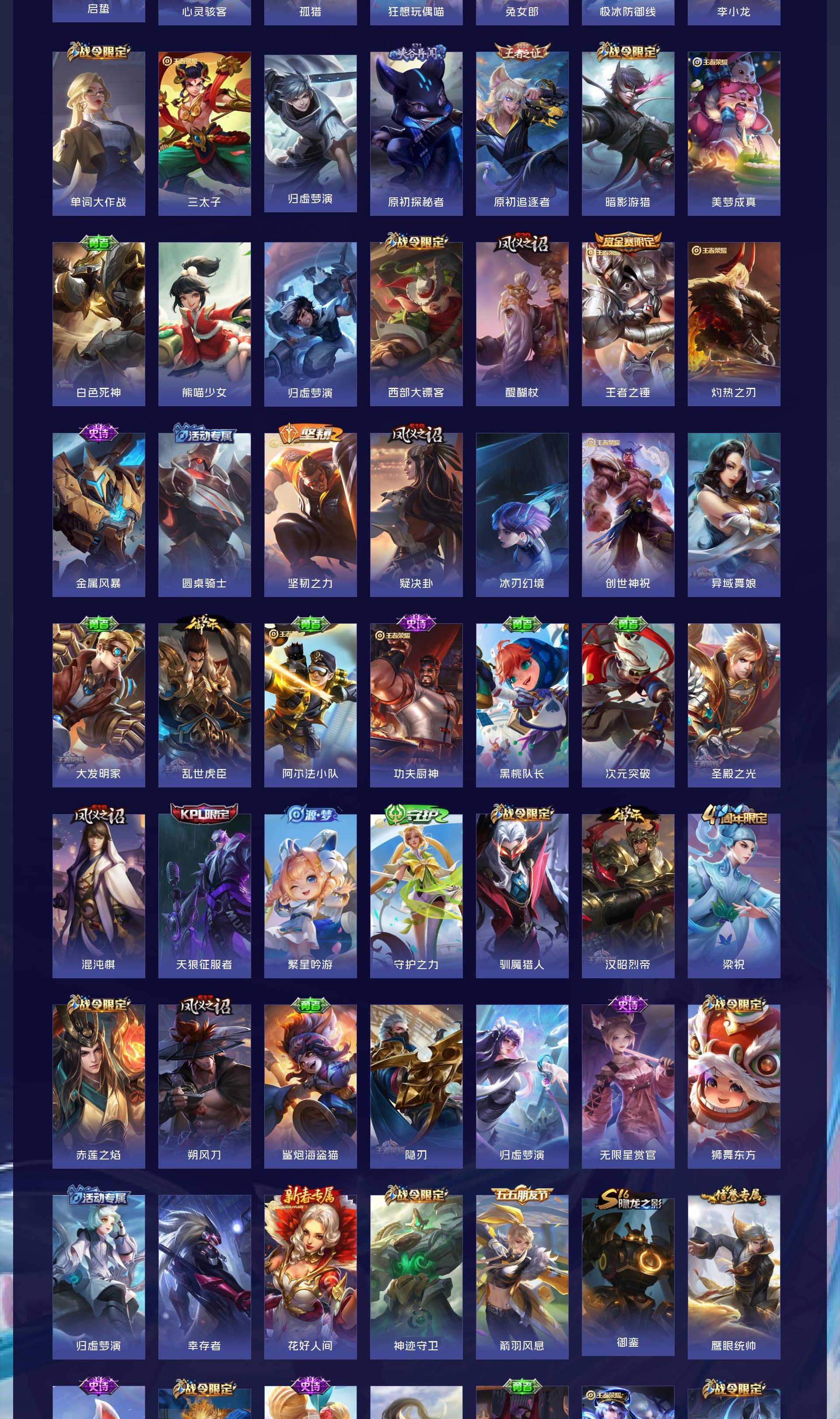 V7 皮肤312 英雄127 非凡王者 荣耀典藏2 无双皮肤1 传说9 其他皮肤306