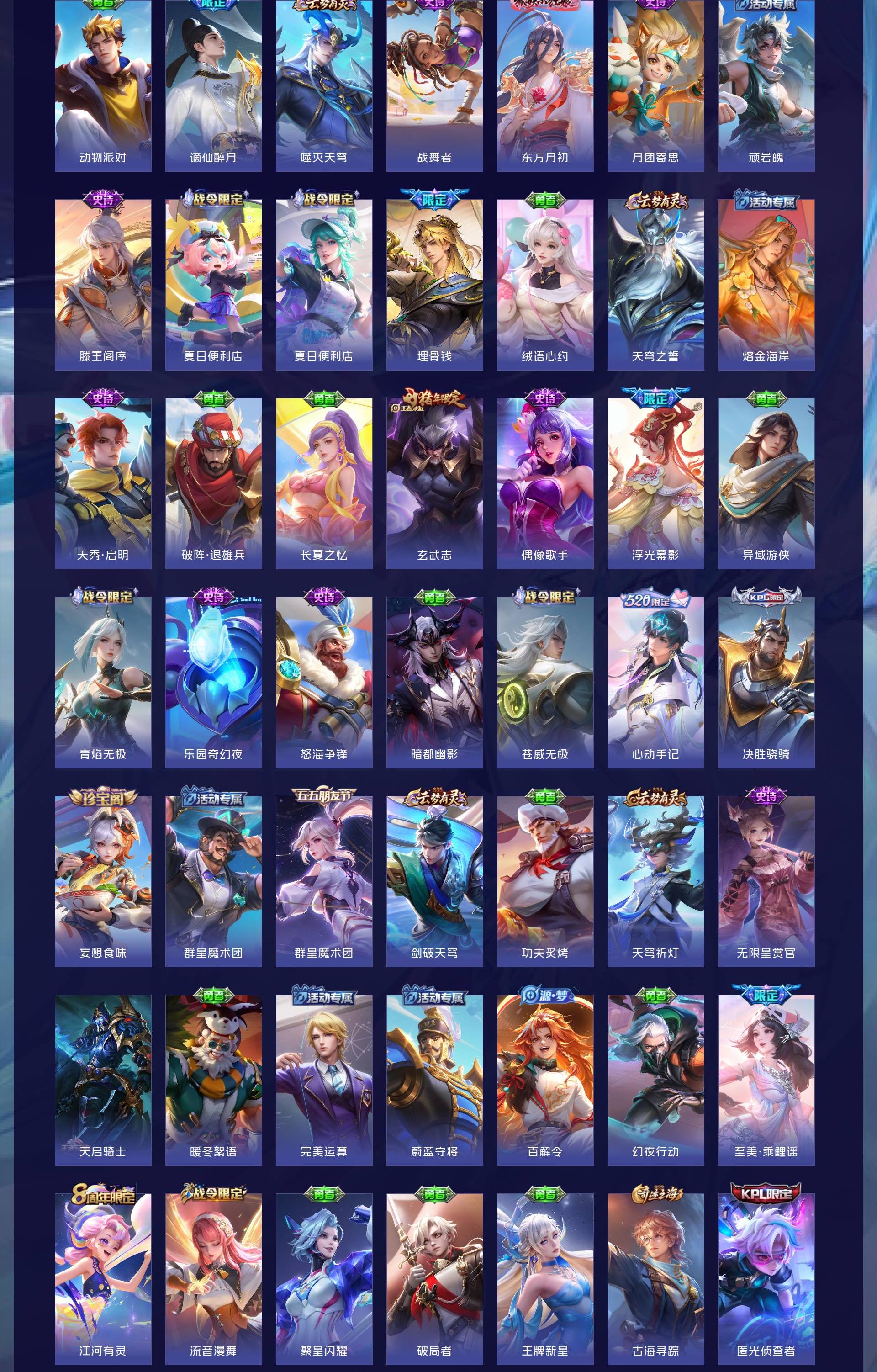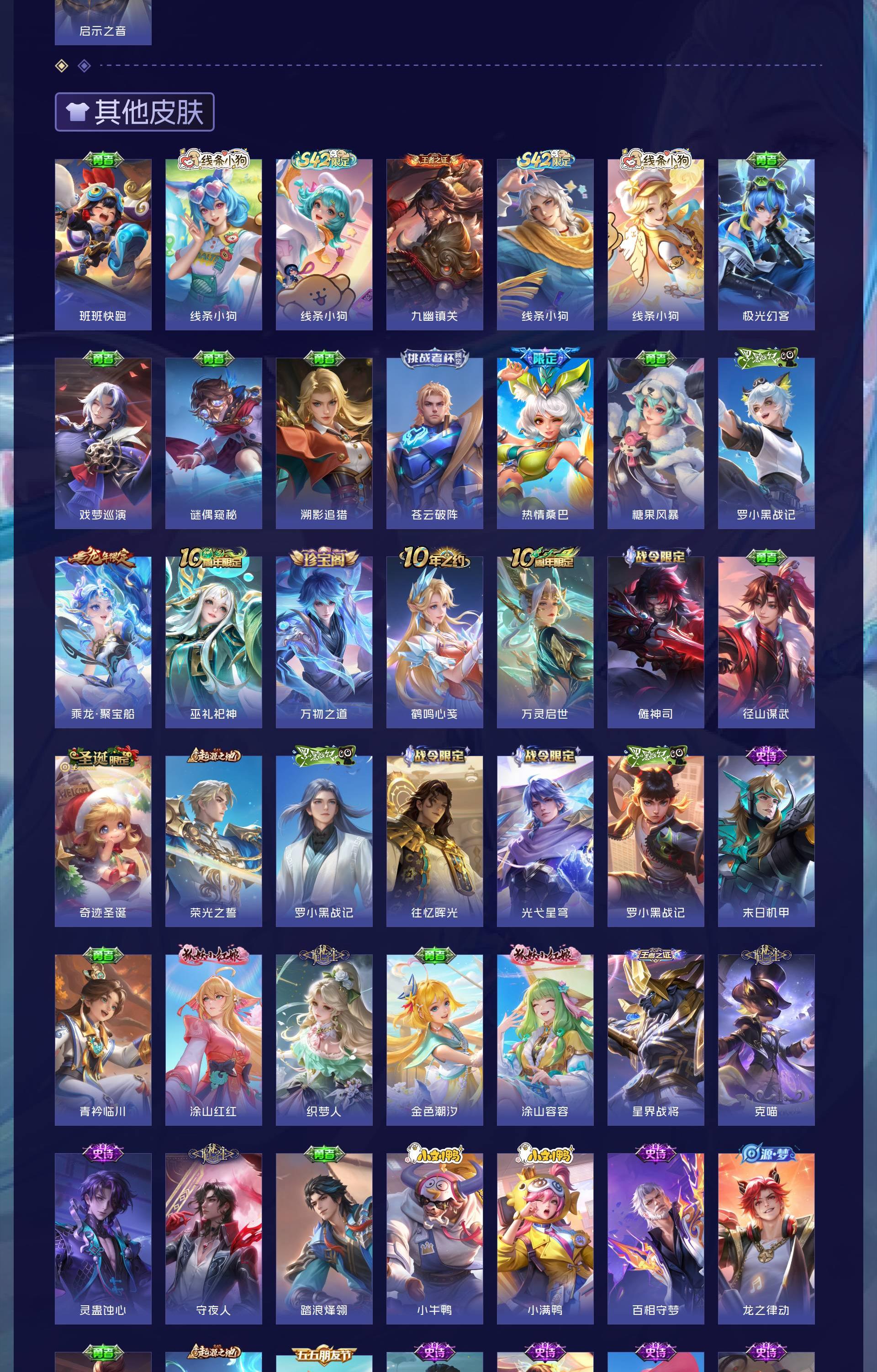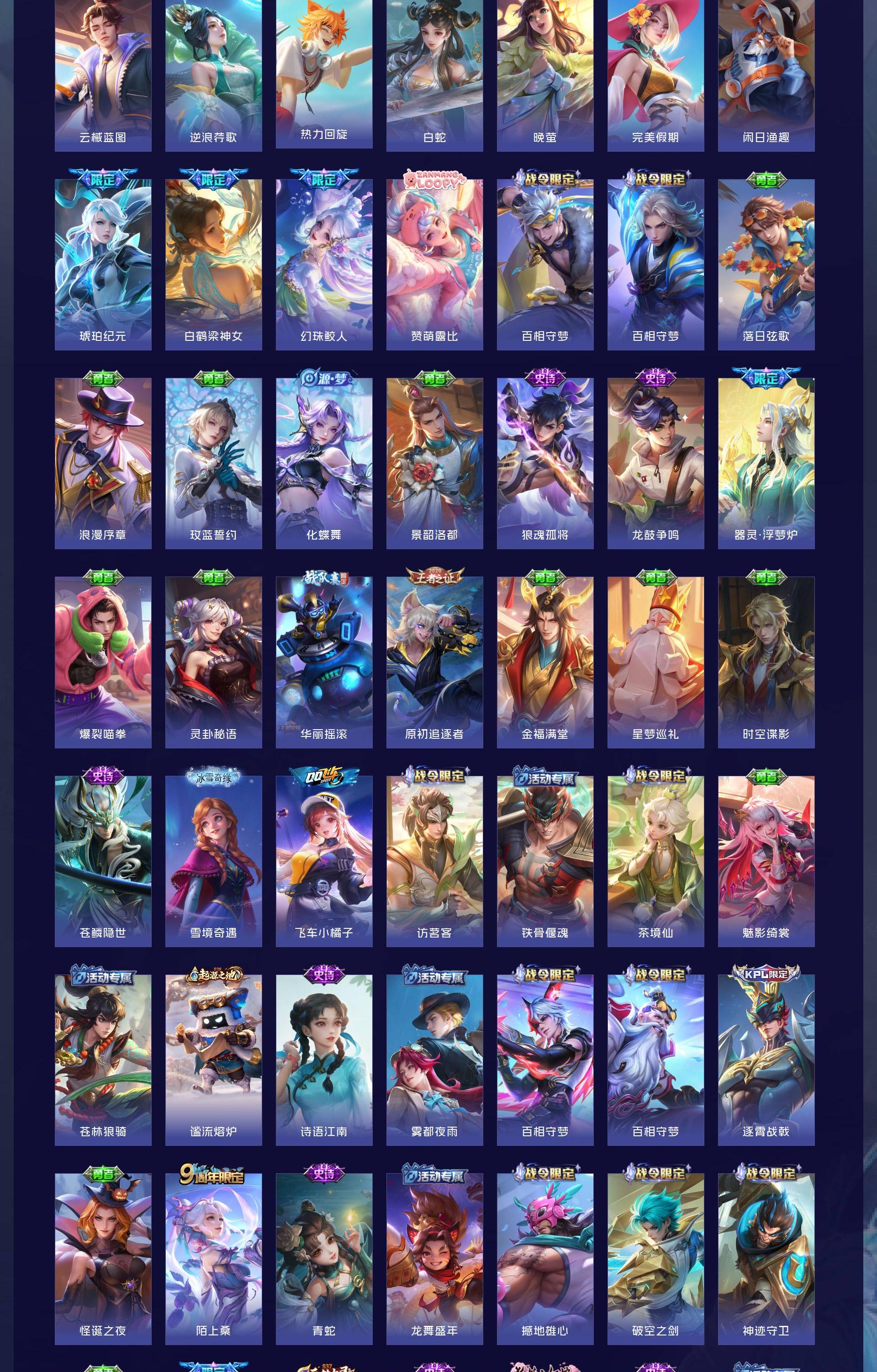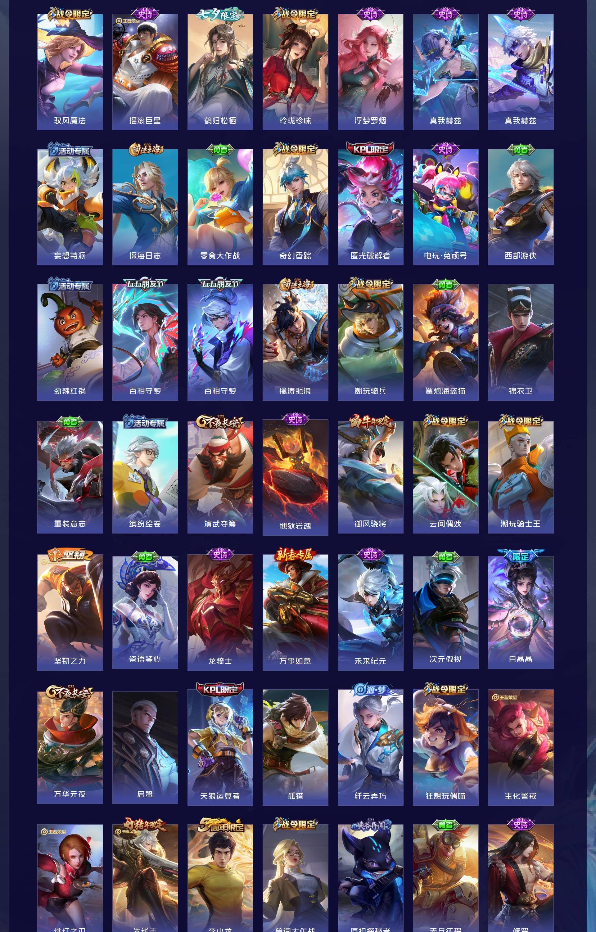 无双贵族 皮肤626 非凡王者 荣耀典藏6 无双皮肤5 珍品传说3 传说99 其他皮肤517