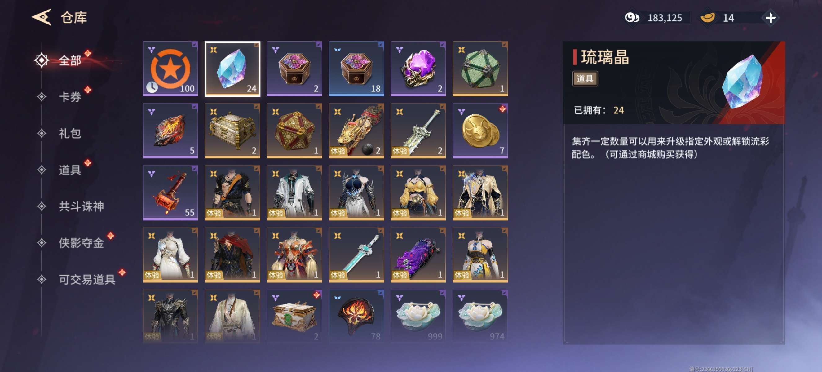 胡桃殷紫萍蓝梦等精品皮肤,武器皮肤等。