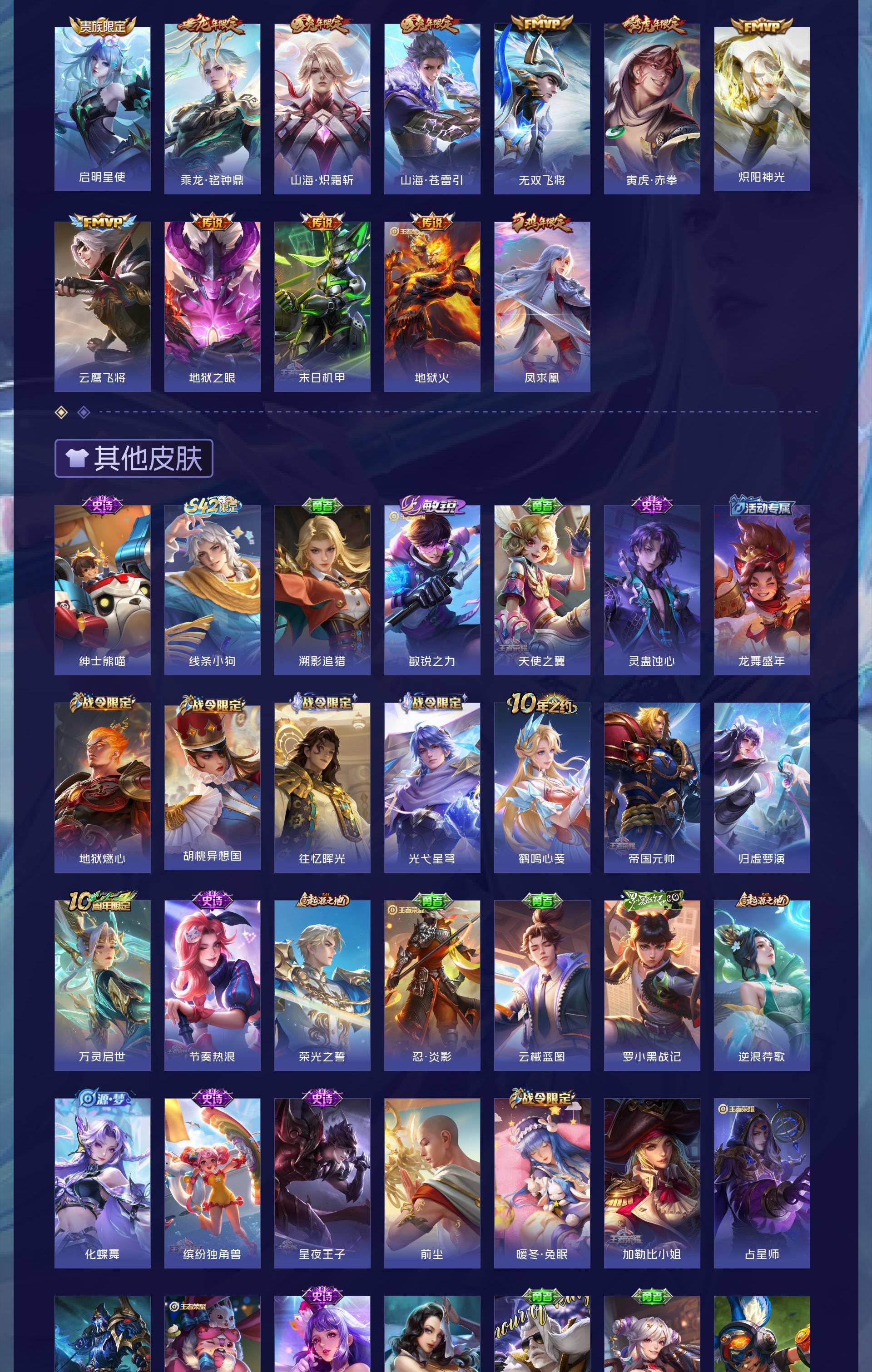 V8 皮肤278 英雄128 至尊星耀 荣耀典藏1 无双皮肤1 珍品传说1 传说20 其他皮肤261