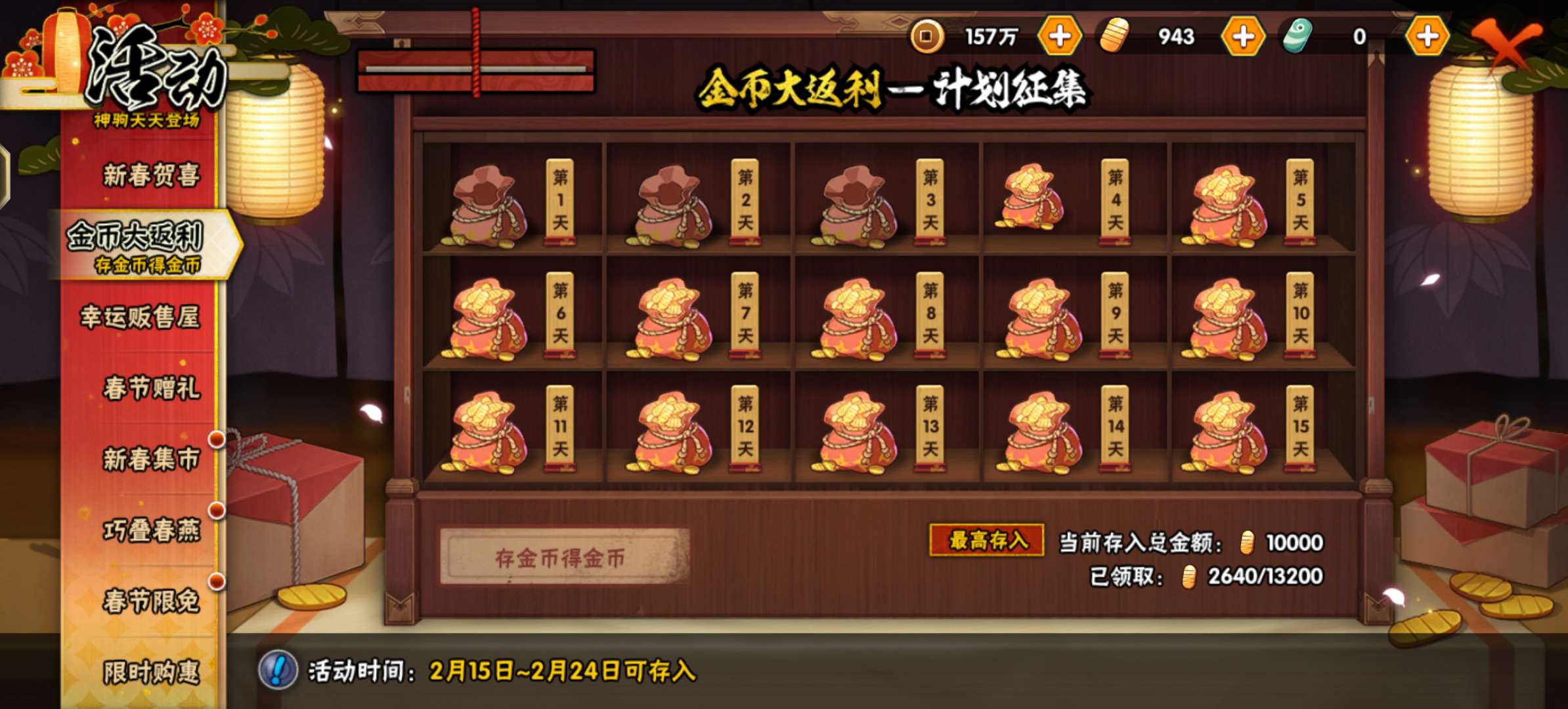 新春鼬加新皮肤,金币大返利已储备1w金币,月卡还有30多天,只想卖个忍者加月卡钱,