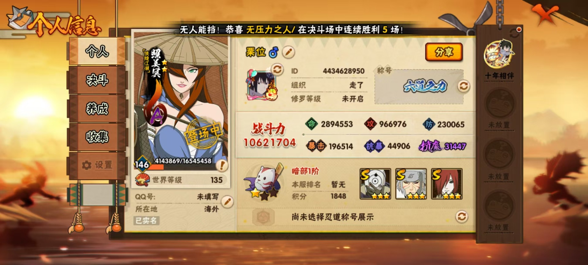 [16952890]V10 21S忍 31A忍 21通灵 1062.1W战力 可二次 可修改实名