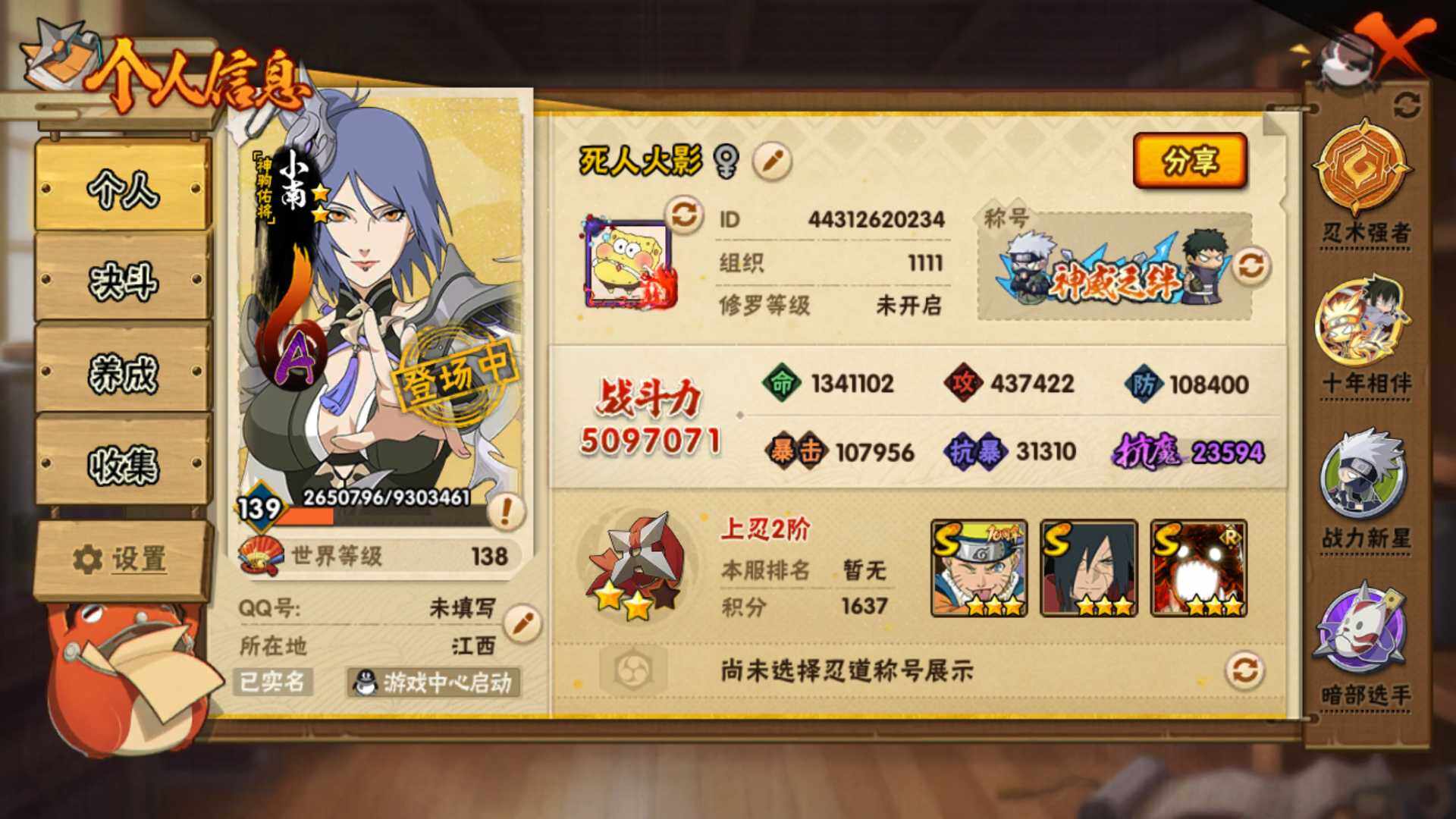 (可免费转苹果)V9 11S 28A 509万战力 3100金币 热门A百豪樱 面麻 侠隐兜 夏日鼬 碎片创立柱间66片 十尾带土60片 舍人60片 YY1955
