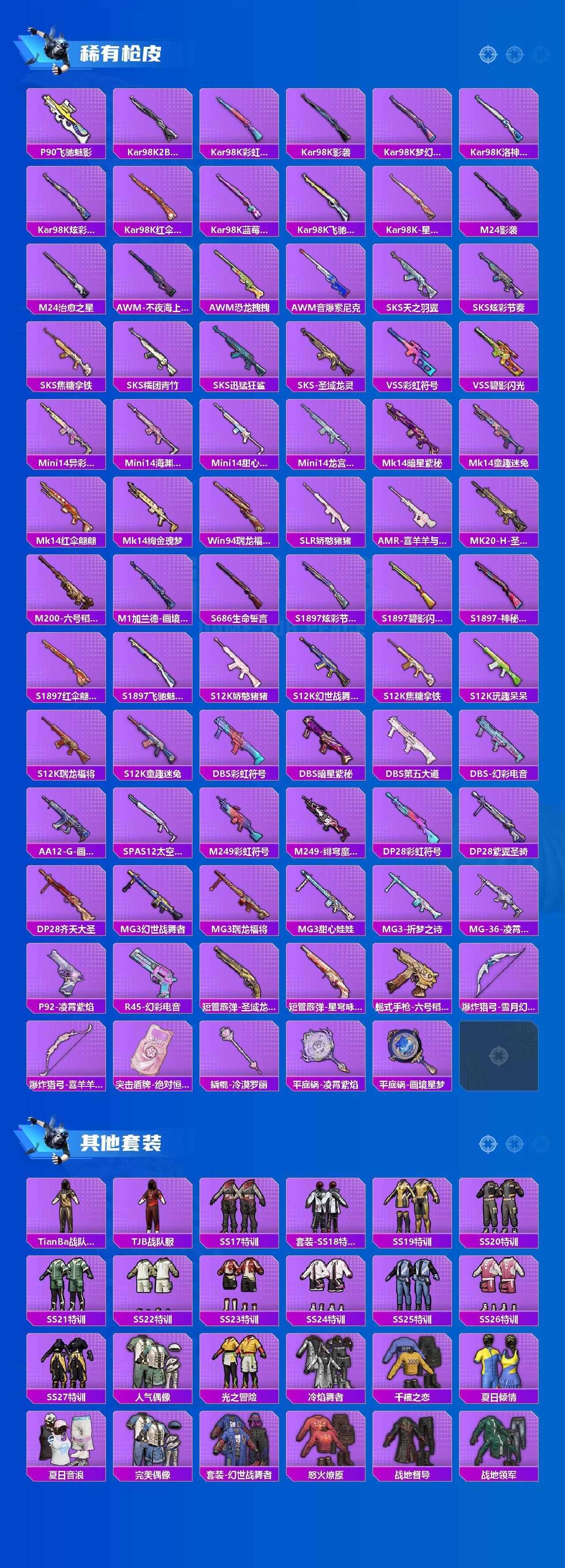【热门品类】:粉装-梦幻火箭,套装-都市猎人,套装-小丑鱼,套装-AG战队服,套装-龟仙人,套装-暗影哥特,角色-六号稻草人