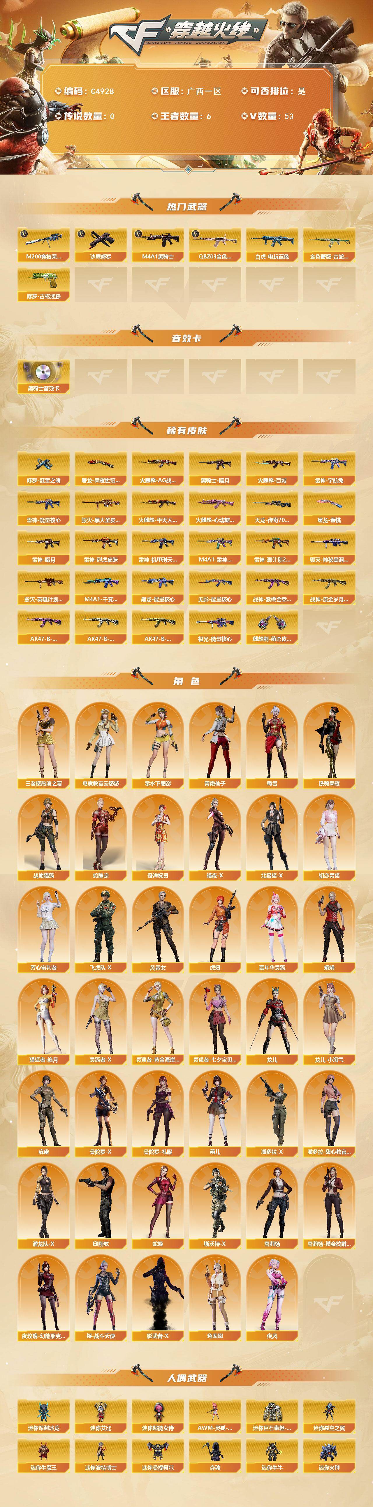 【C4928】广西一区-55V-6王者武器数-0炫金武器数