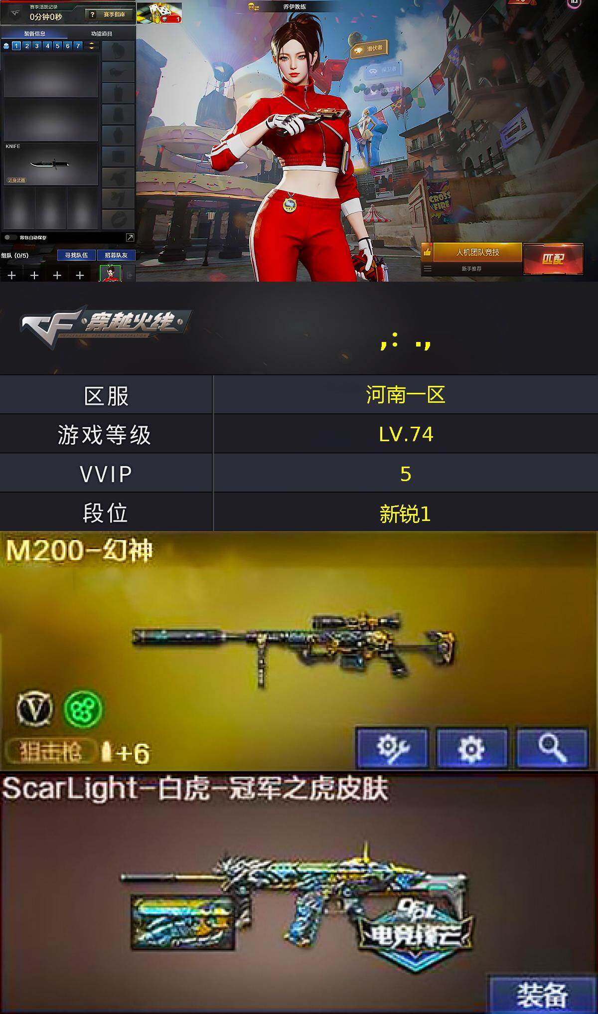 【C4885】河南一区-5V-0王者武器数-0炫金武器数【V武器数5】【M200-幻神】【ScarLight-白虎-冠军之虎皮肤】【乔伊教练】【AK47-火麒麟】