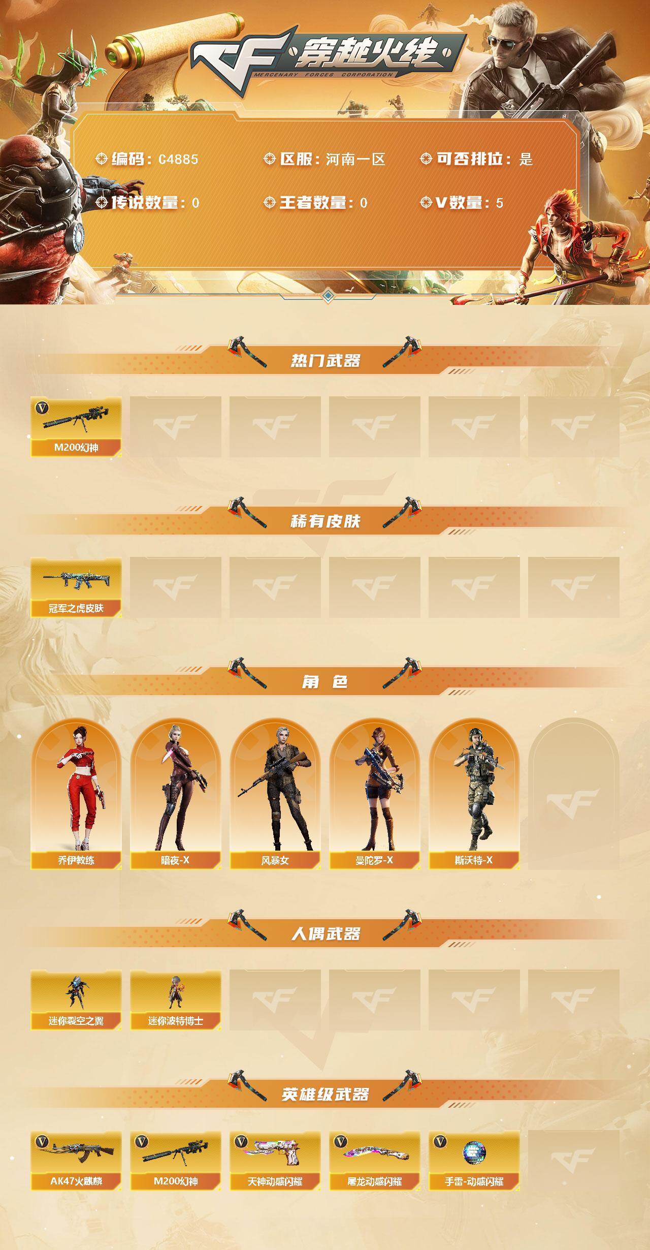 C4885河南一区-5V-0王者武器数-0炫金武器数