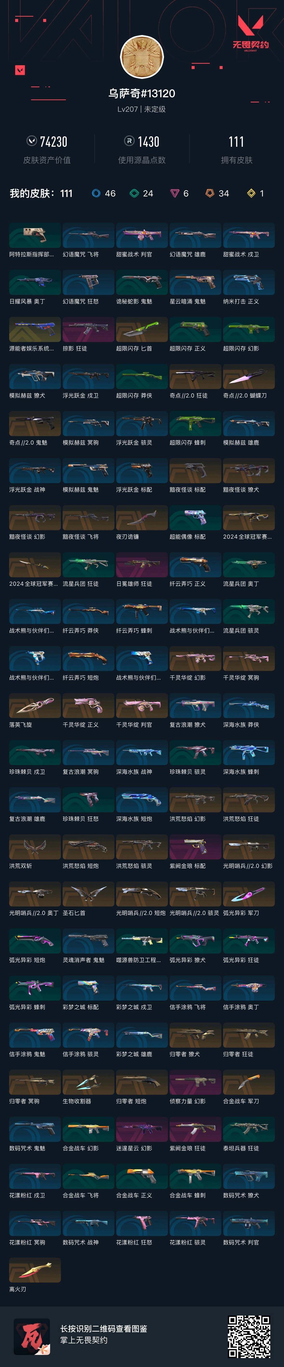【WWC1389】终极*34/传奇*1/卓越*6/皮肤*111/等级*207/段位:未定级/2024全球冠军赛套装/离火刃套装/千灵华绽套装/光明哨兵//2.0套装/奇点//2.0套装/归零者套装/黯夜怪谈套装/洪荒怒焰套装/幻棱/炼狱/维斯/暮蝶/钛狐/壹决/铁臂/捷风/雷兹/幽影/不死鸟/贤者/猎枭/蝰蛇/零/芮娜/奇乐/尚勃勒/霓虹/斯凯/夜露/星礈/K/O/海神/盖可/黑梦/钢锁/近战武器-2024全球冠军赛 战刀/近战武器-奇点//2.0 蝴蝶刀/近战武器-离火刃/近战武器-落英飞旋/