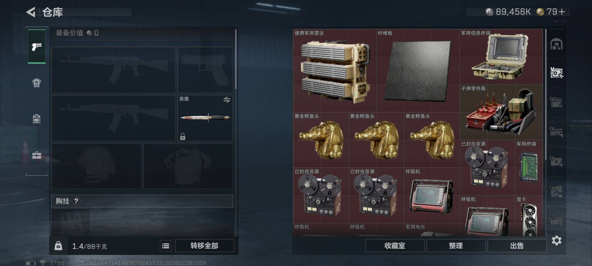 总资产(M):380M/哈夫币(K):89456K/