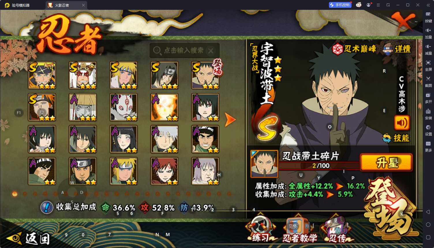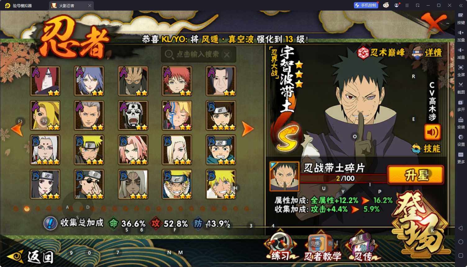 V7/战力466W/S忍6/A忍23/疾风传-我爱罗/死司凭血-飞段/青年-长门/迈特凯/2星小南「神驹佑将」