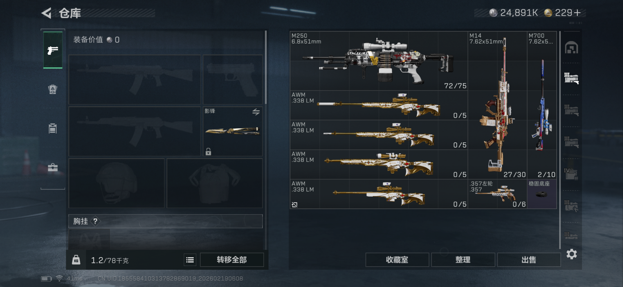 两个红皮 影锋刀皮 总资产230m现金2千5百万83个awm子弹 枪皮很多 要的就来