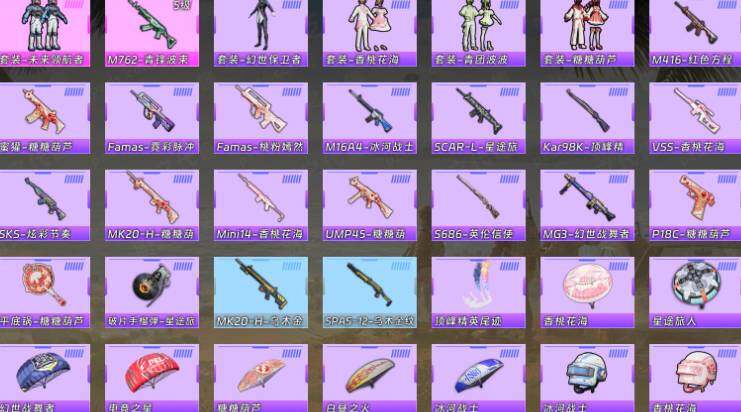【稀有枪皮】:M416-红色方程式,Famas-桃粉嫣然,SKS-炫彩节奏,MG3-幻世战舞者