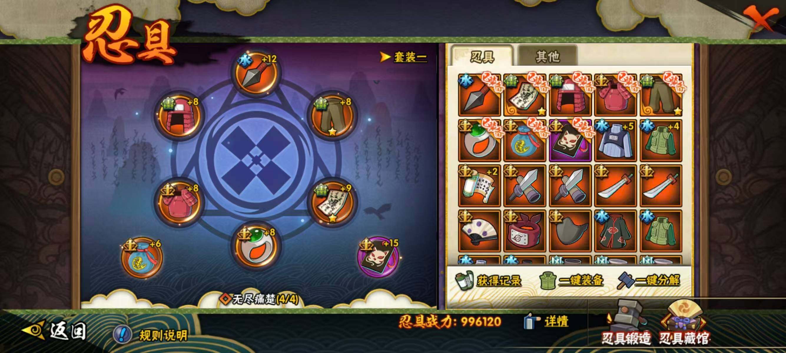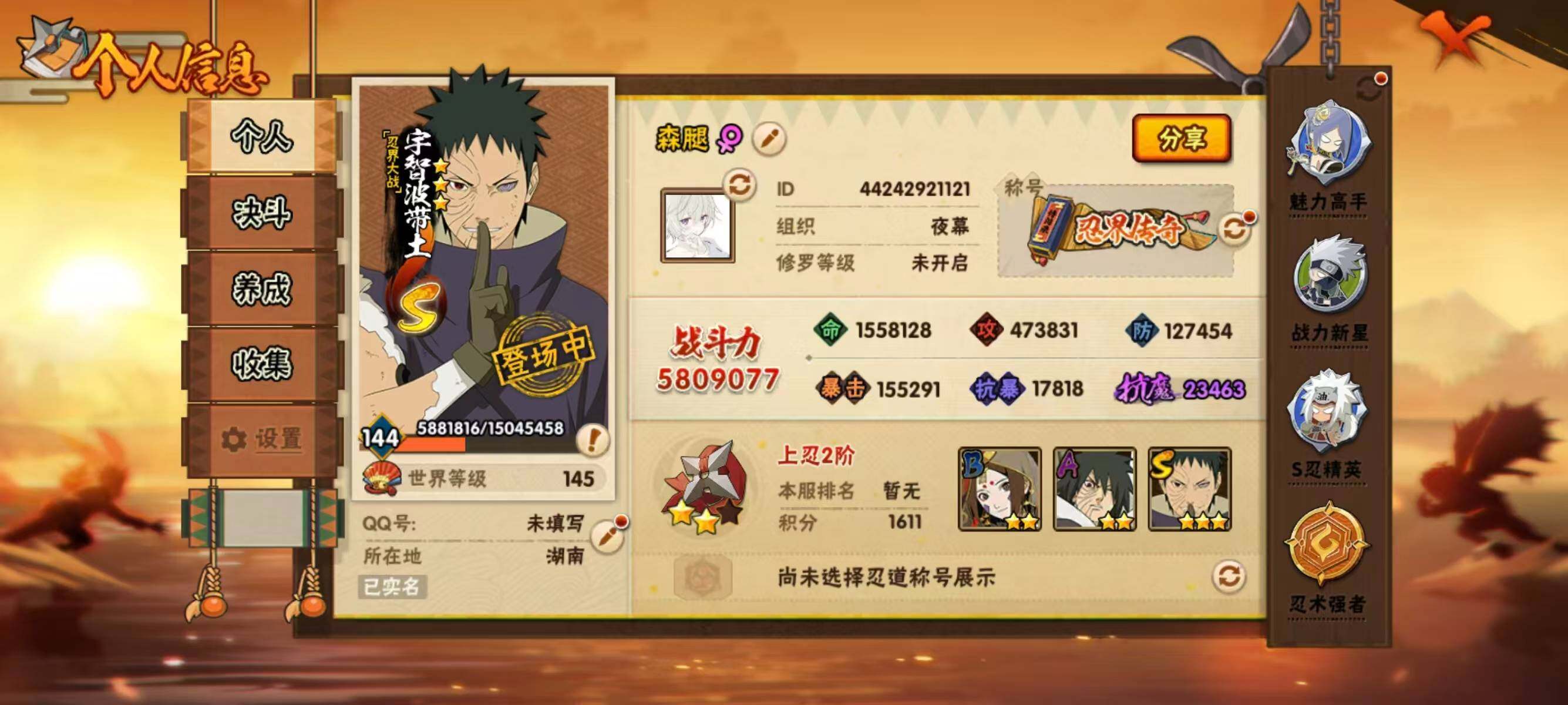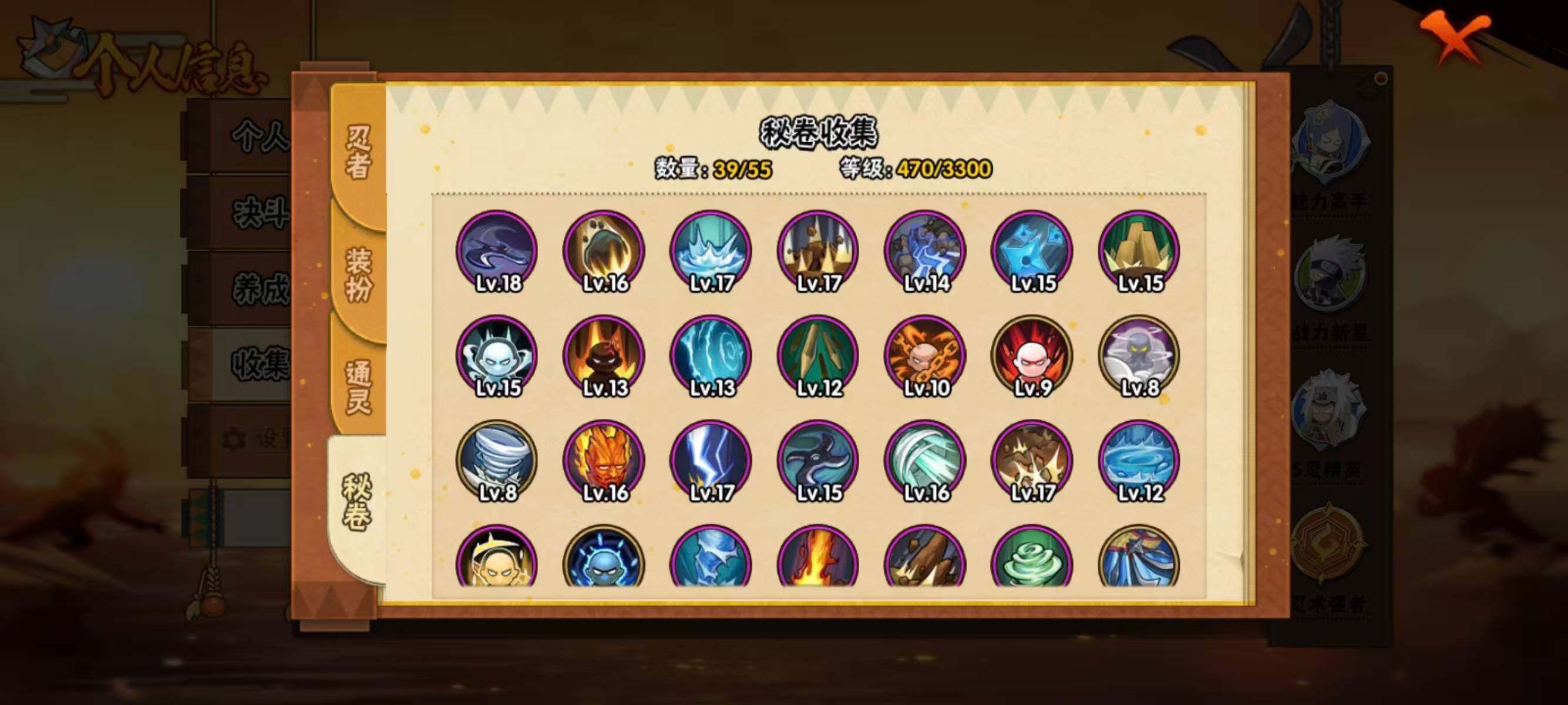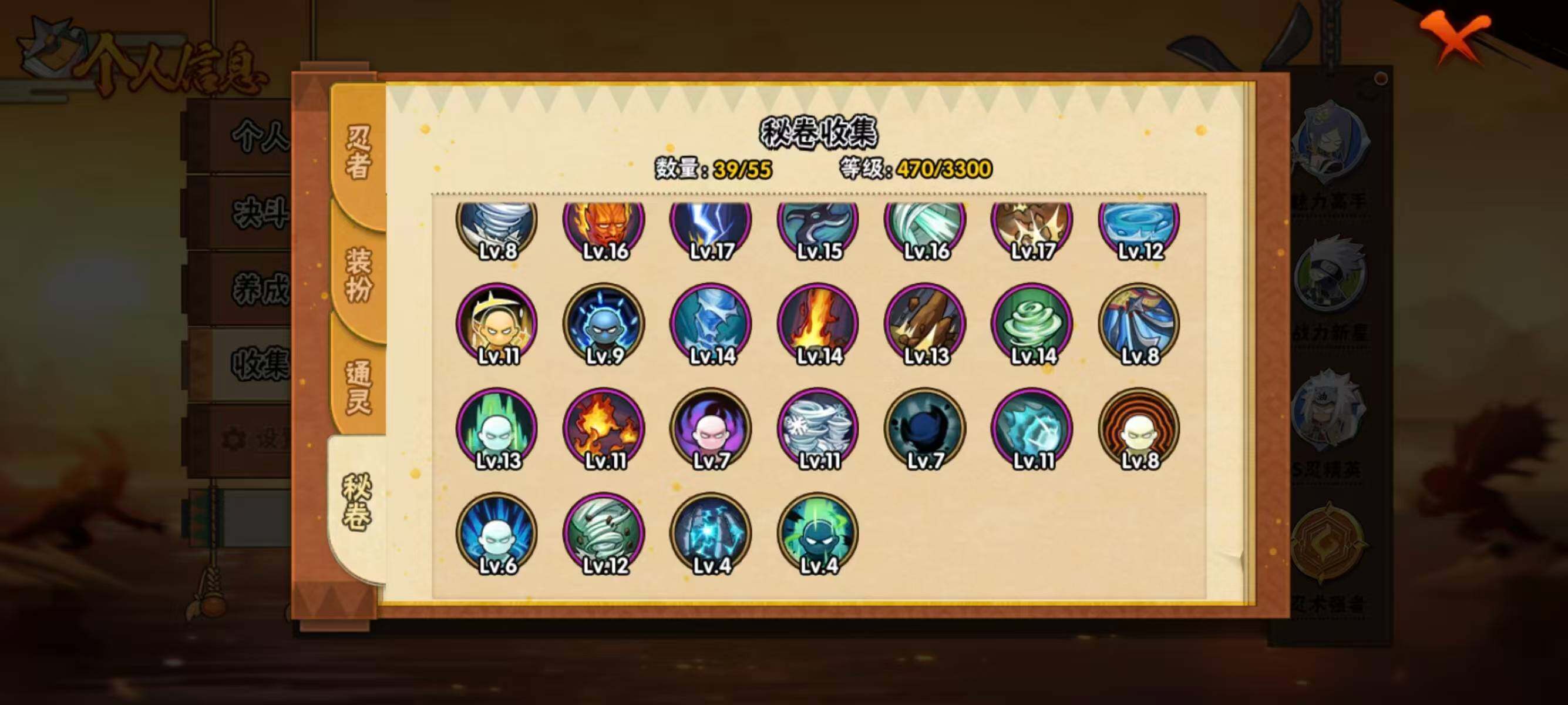 【S级忍者】:波风水门「秽土转生」(3星),千手柱间「秽土转生」(3星),宇智波鼬「秽土转生」(3星),宇智波斑「秽土转生·解」(3星),宇智波带土「忍界大战」(3星),宇智波鼬「须佐能乎」(3星),旗木卡卡西「须佐能乎」(3星),自来也「舞之豪杰」(3星),大蛇丸(3星),波风水门(3星),佩恩「天道」(3星),漩涡鸣人·宇智波佐助(3星)