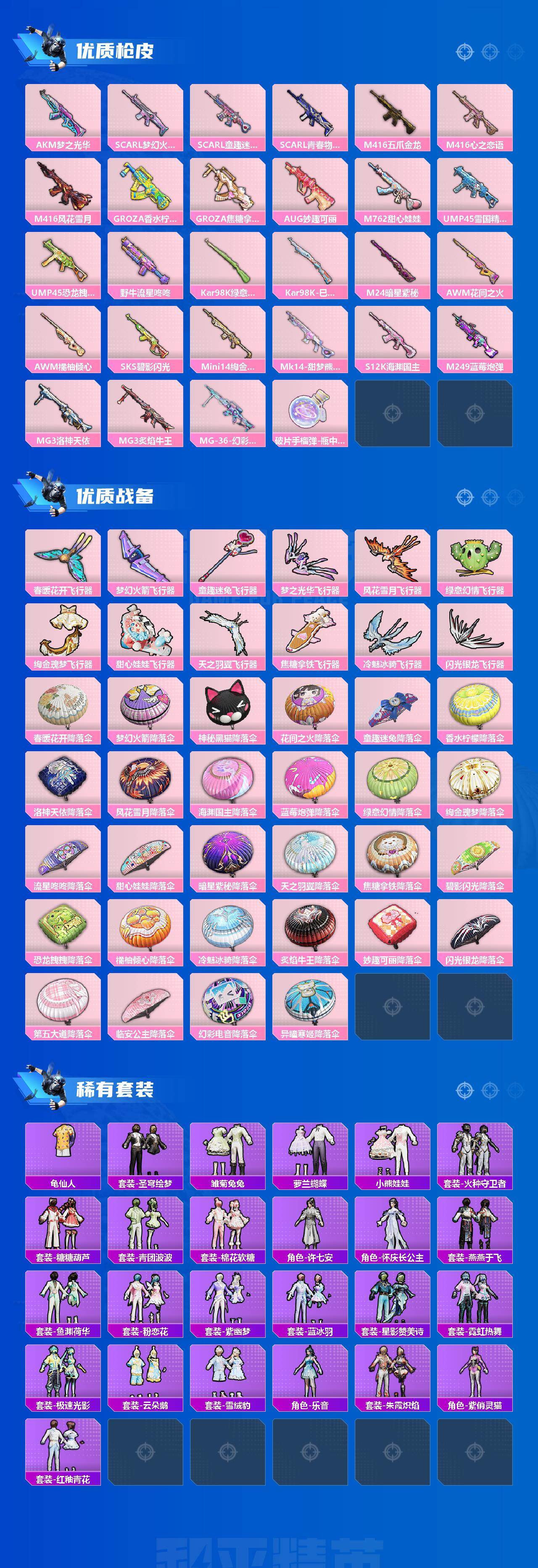 【热门品类】:粉装-雪国幻梦,粉装-梦幻火箭,粉装-缤纷油彩,套装-浪漫天命,套装-冥河战士,套装-胖达圆圆,套装-星河浪客,套装-龟仙人,套装-潮萌小黄鸭,套装-暗影哥特,套装-粉红小猪,套装-红红火火