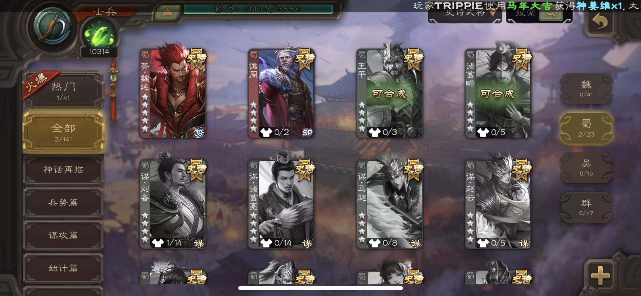 史诗武将数量:
