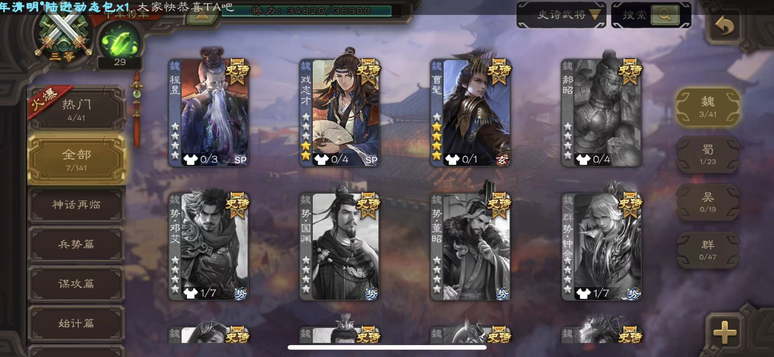 史诗武将数量: