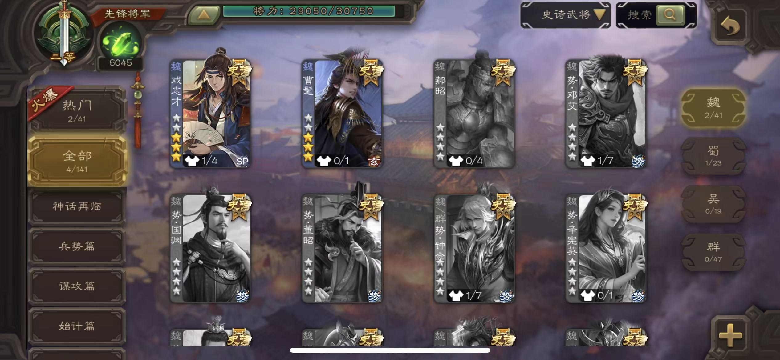 史诗武将数量: