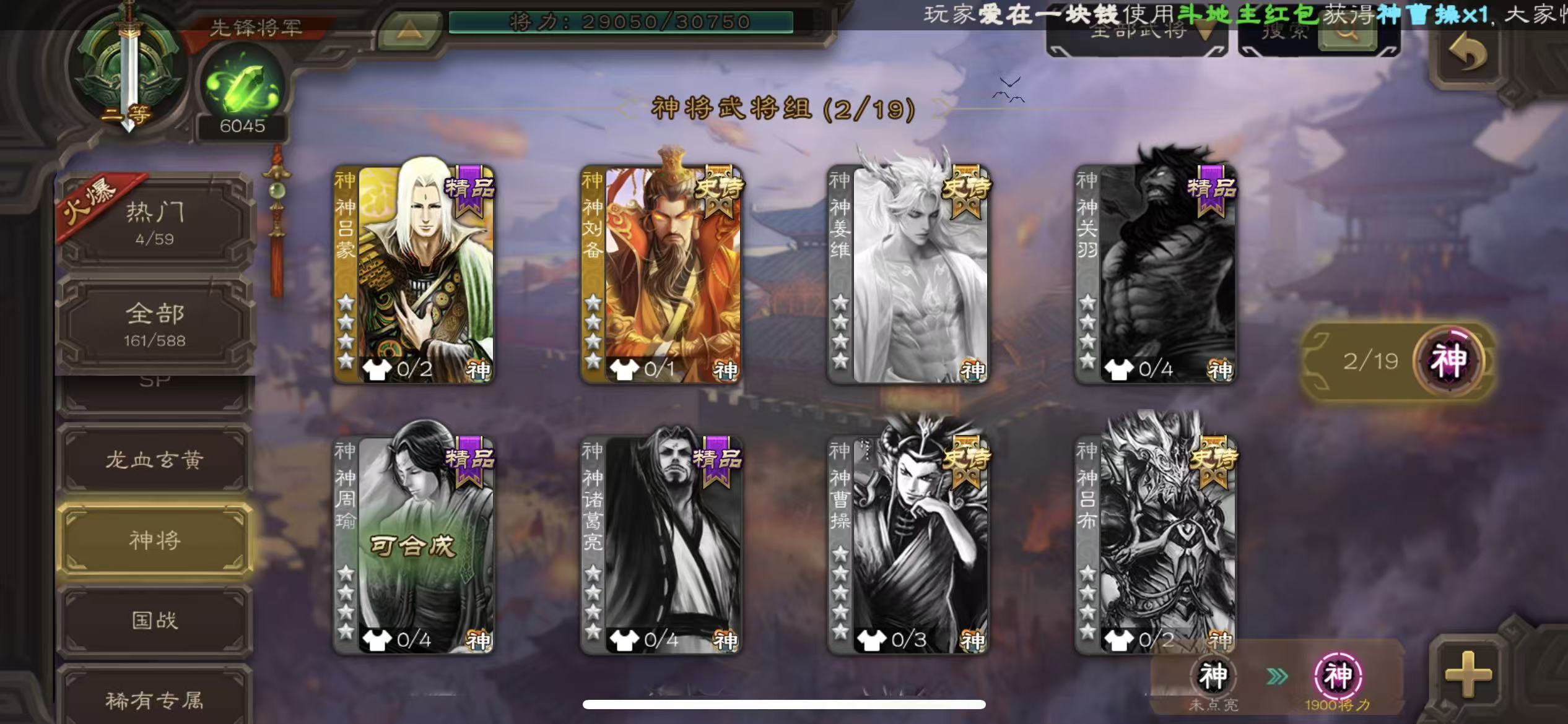 先锋曹髦谋关羽戏子6000将魂三卡
