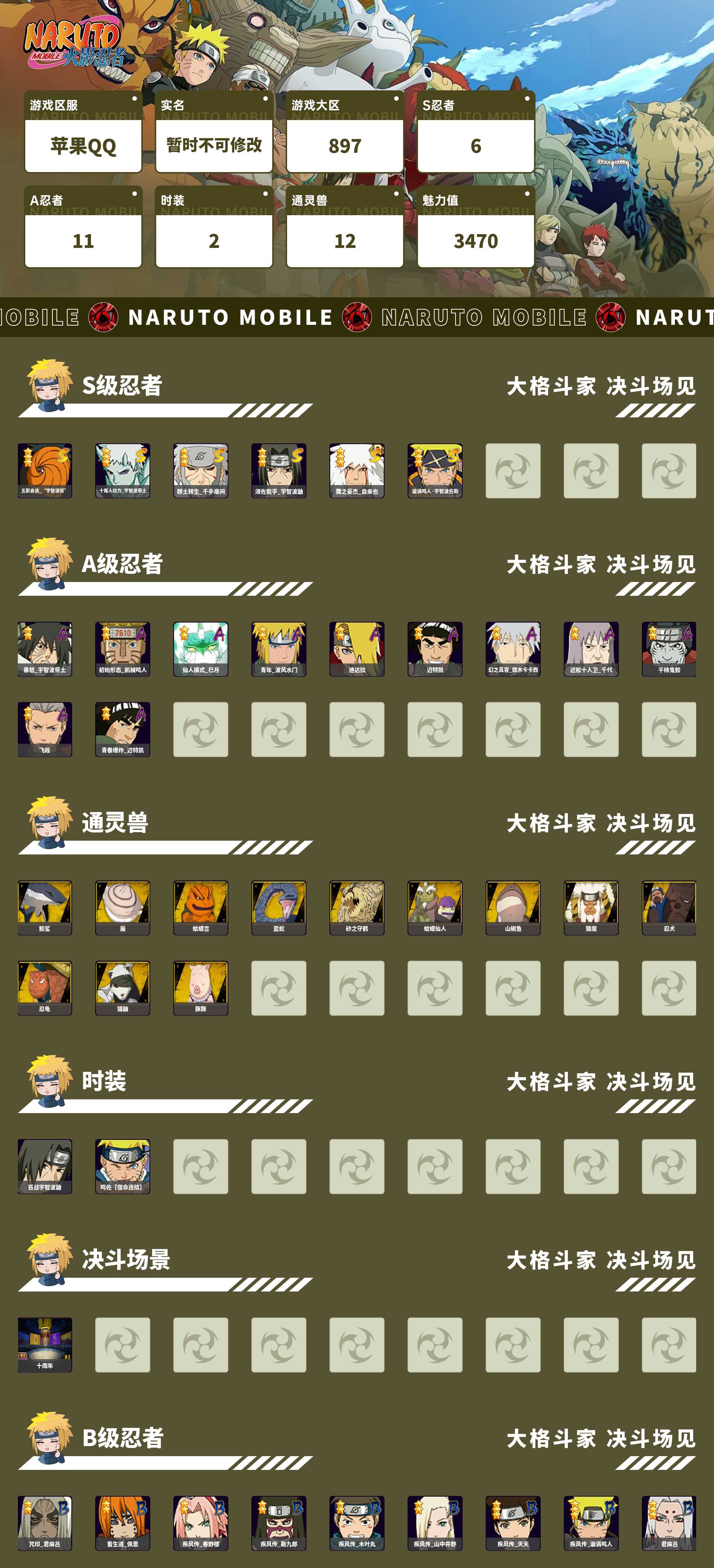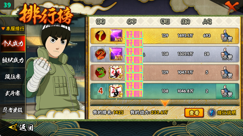 233w五影斑+十尾带土6s+小孩11A战力233账号等级1