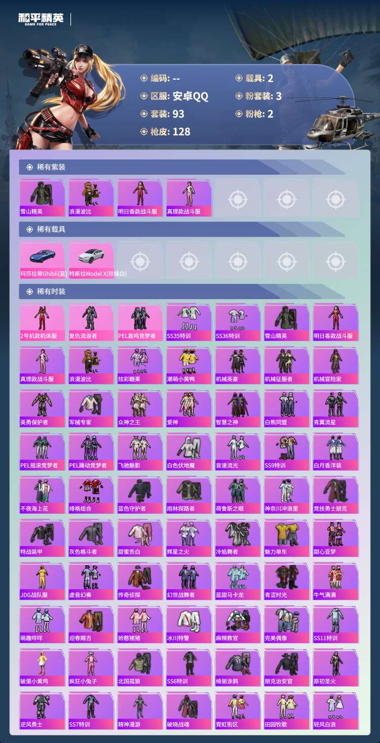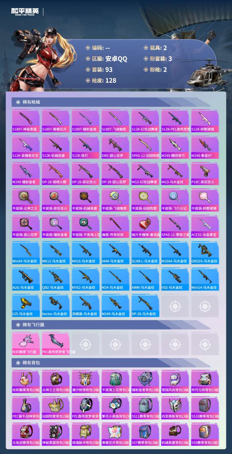 hs61510 安卓手Q-7王牌印记-3粉装-2特效枪-2载具-45946热力值-93套装-128枪