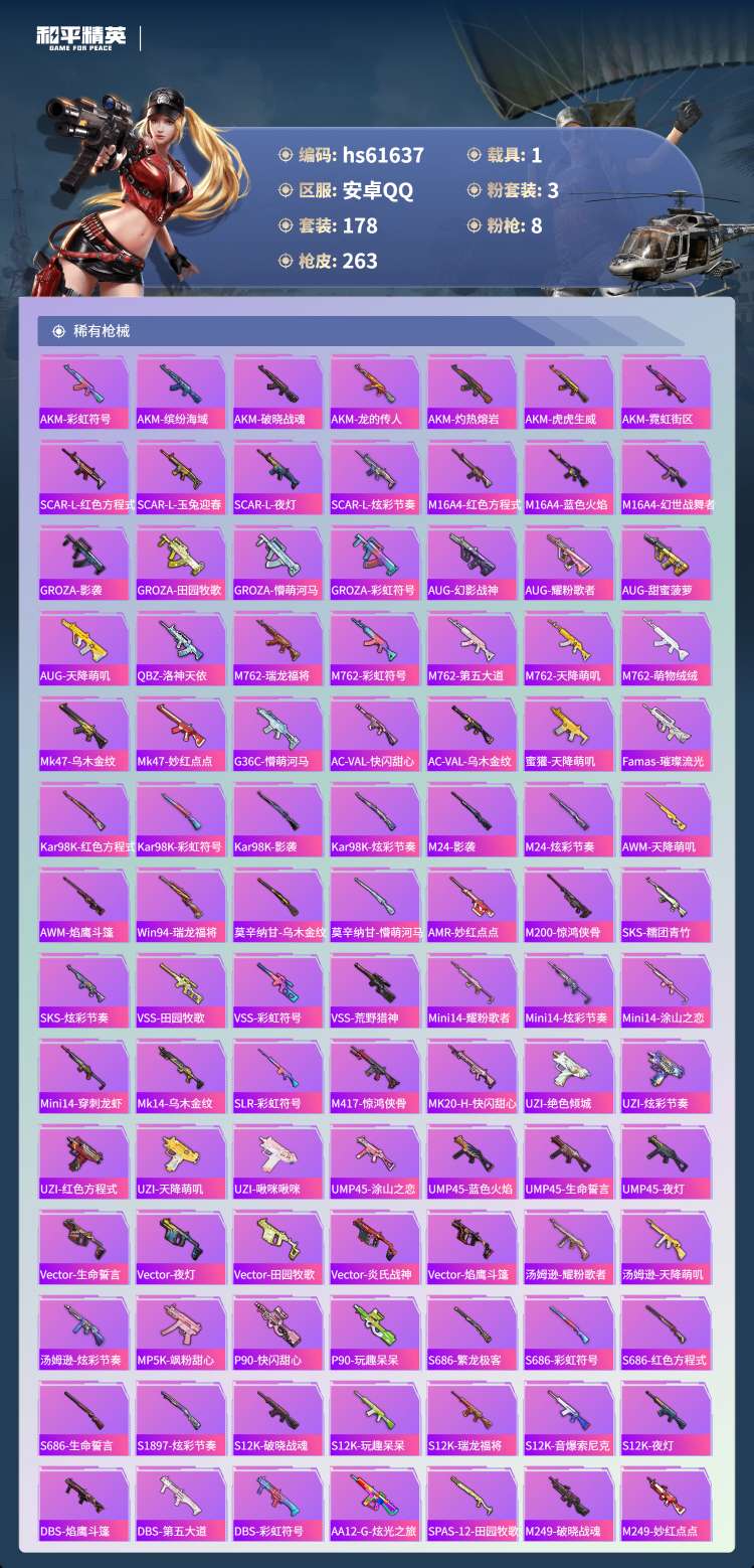 hs61637 安卓手Q-19王牌印记-3粉装-8特效枪-1载具-74341热力值-178套装-2