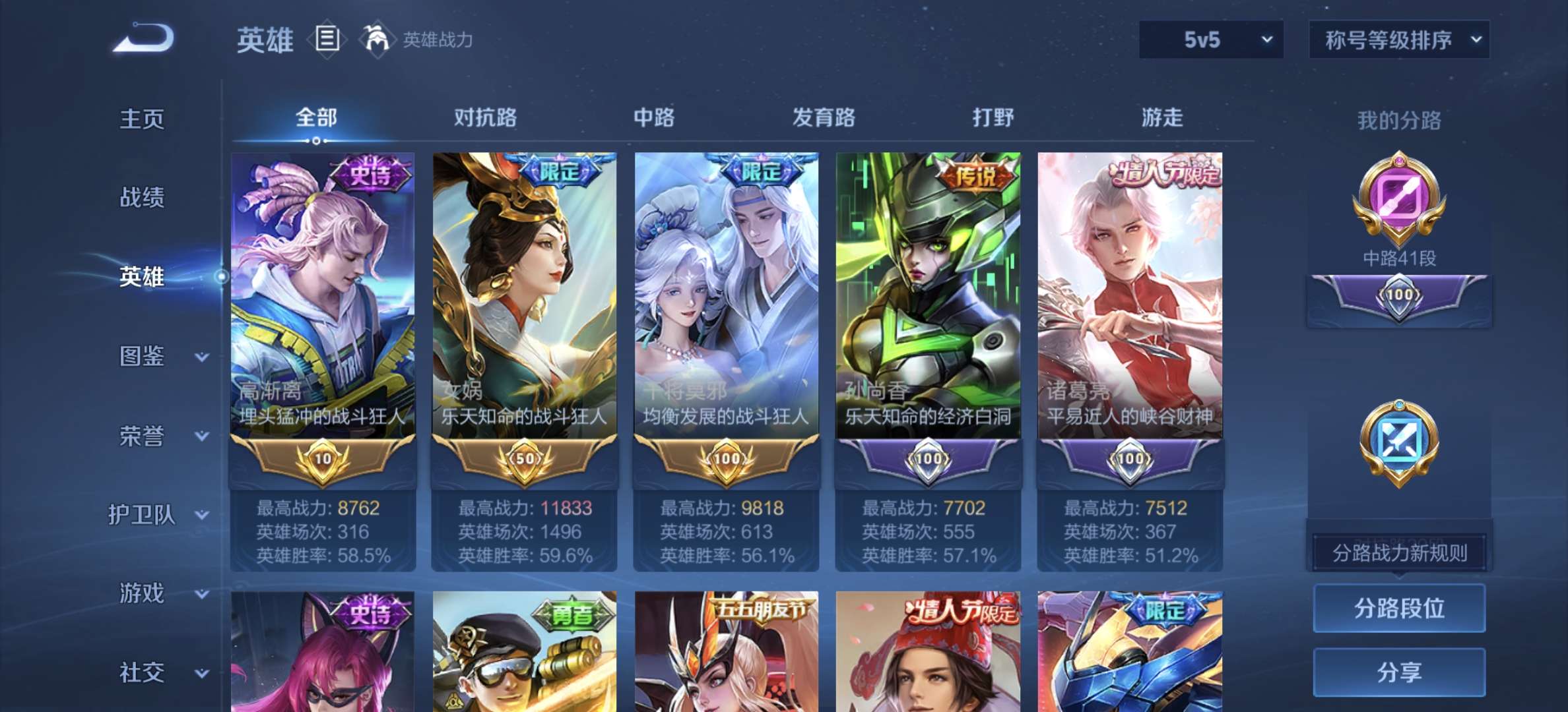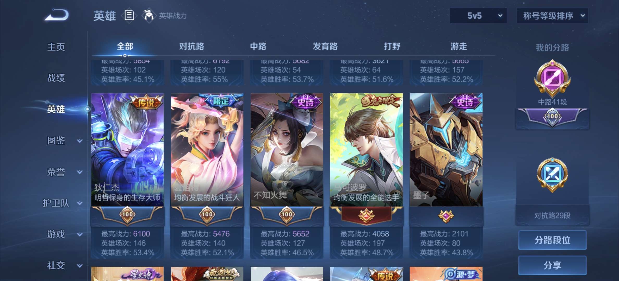 1.2w女娲1w干将,9000分高渐离,41段中路,极品法师号,可以小砍
