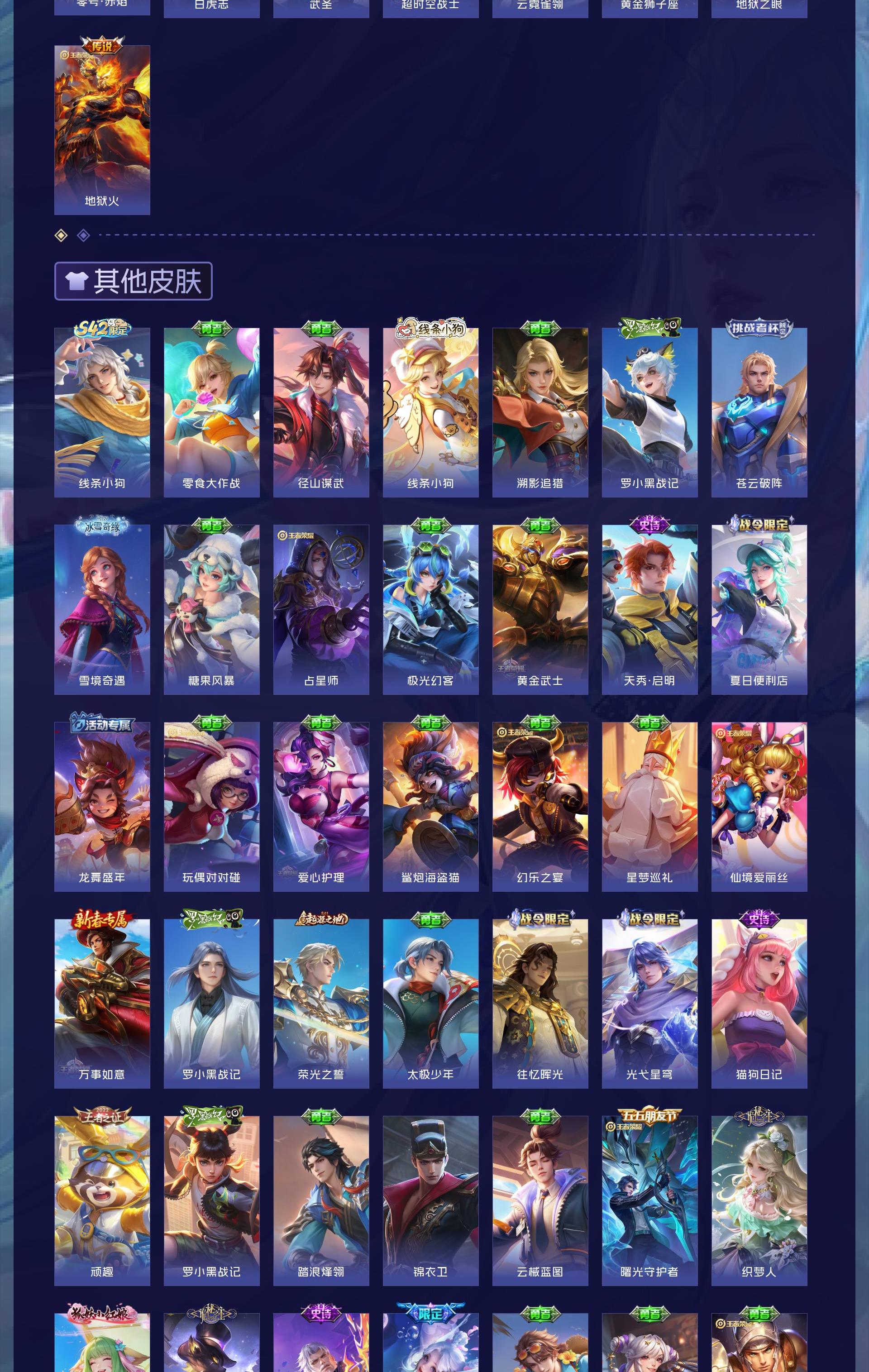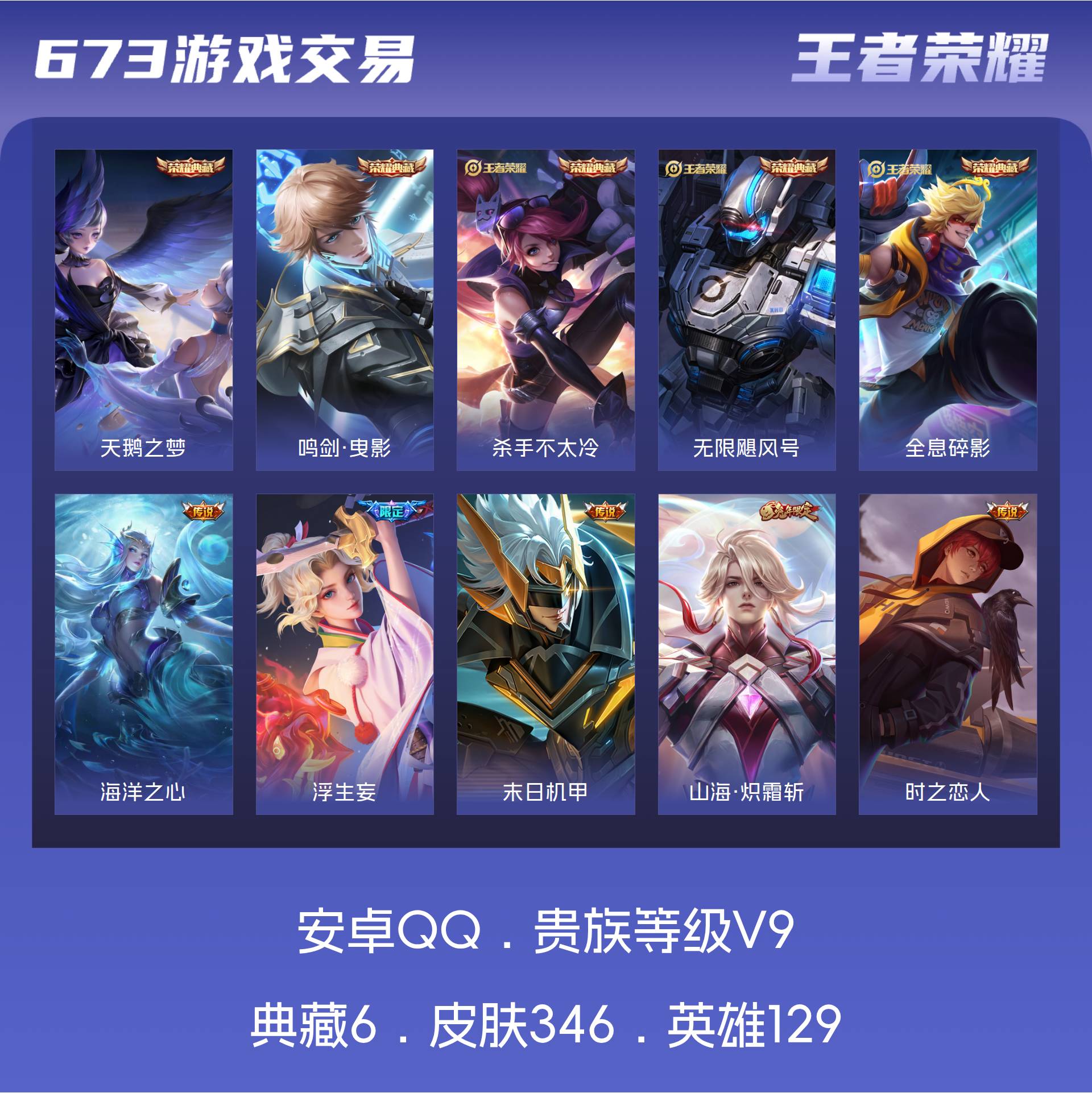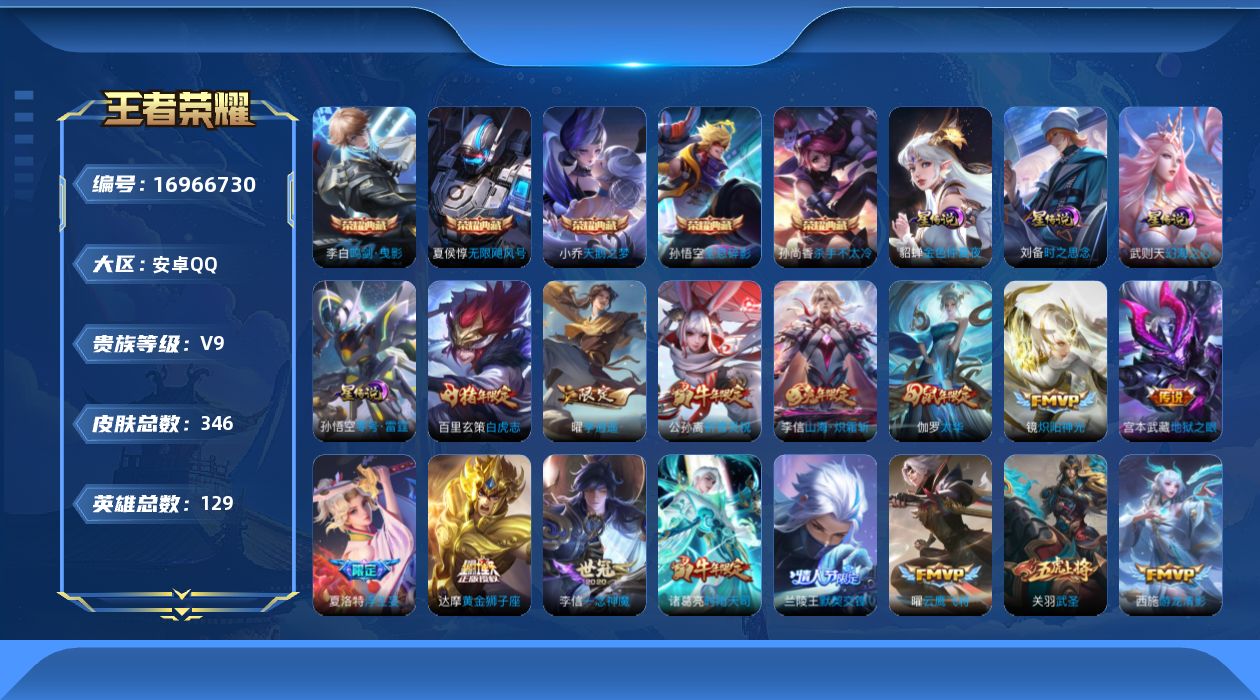 V9 皮肤346 英雄129 至尊星耀 荣耀典藏6 传说30 其他皮肤317
