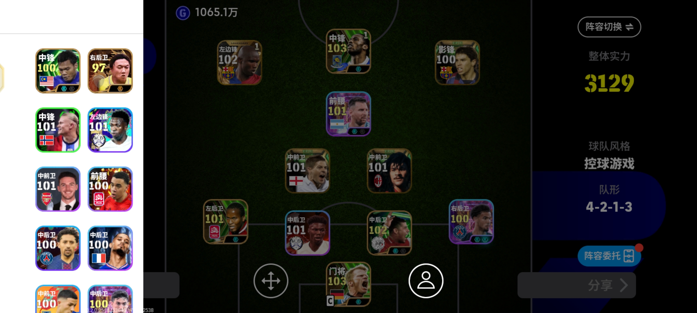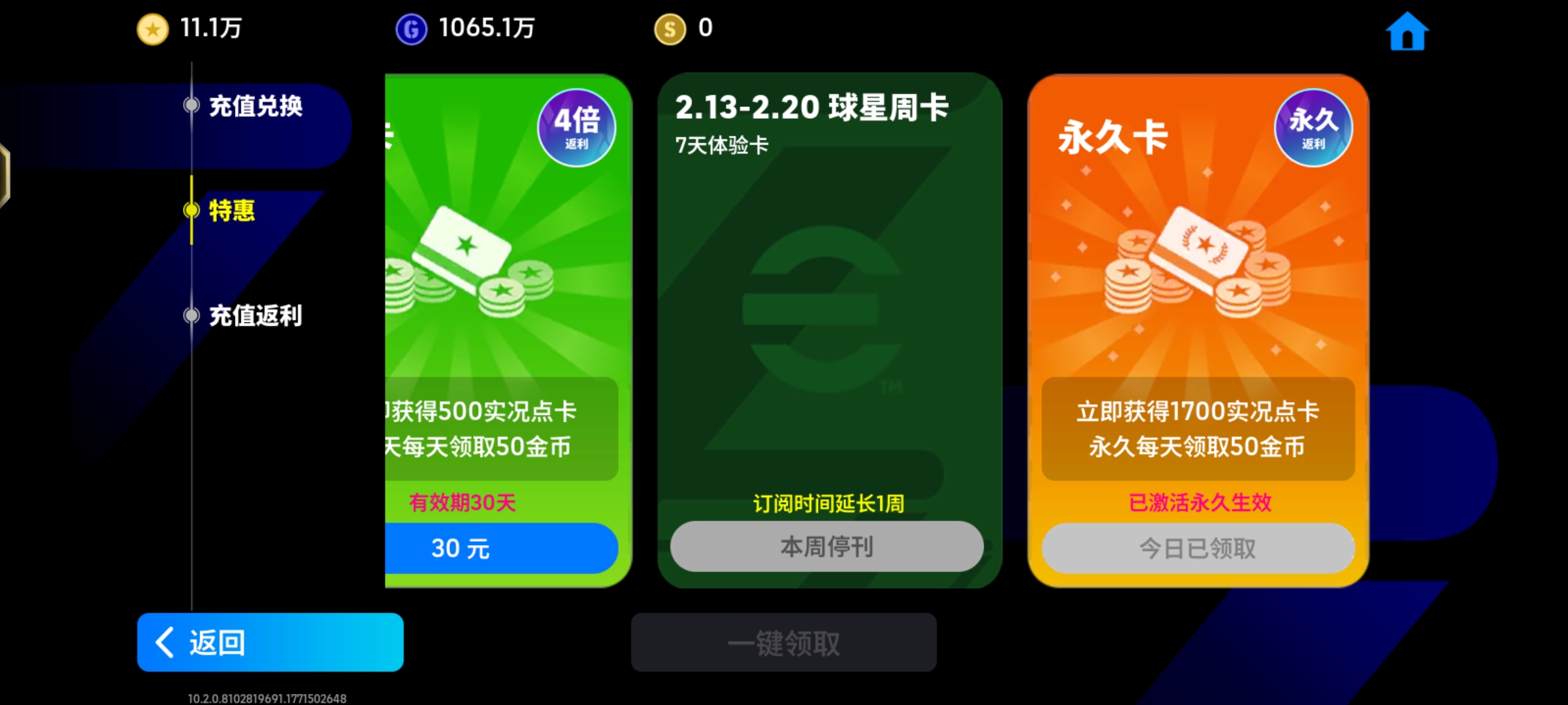 实况足球【安卓官方】11W1金币永久卡4增能1黄传1BT4史诗36精选增能德罗巴卡恩魏群罗伯托黄传埃
