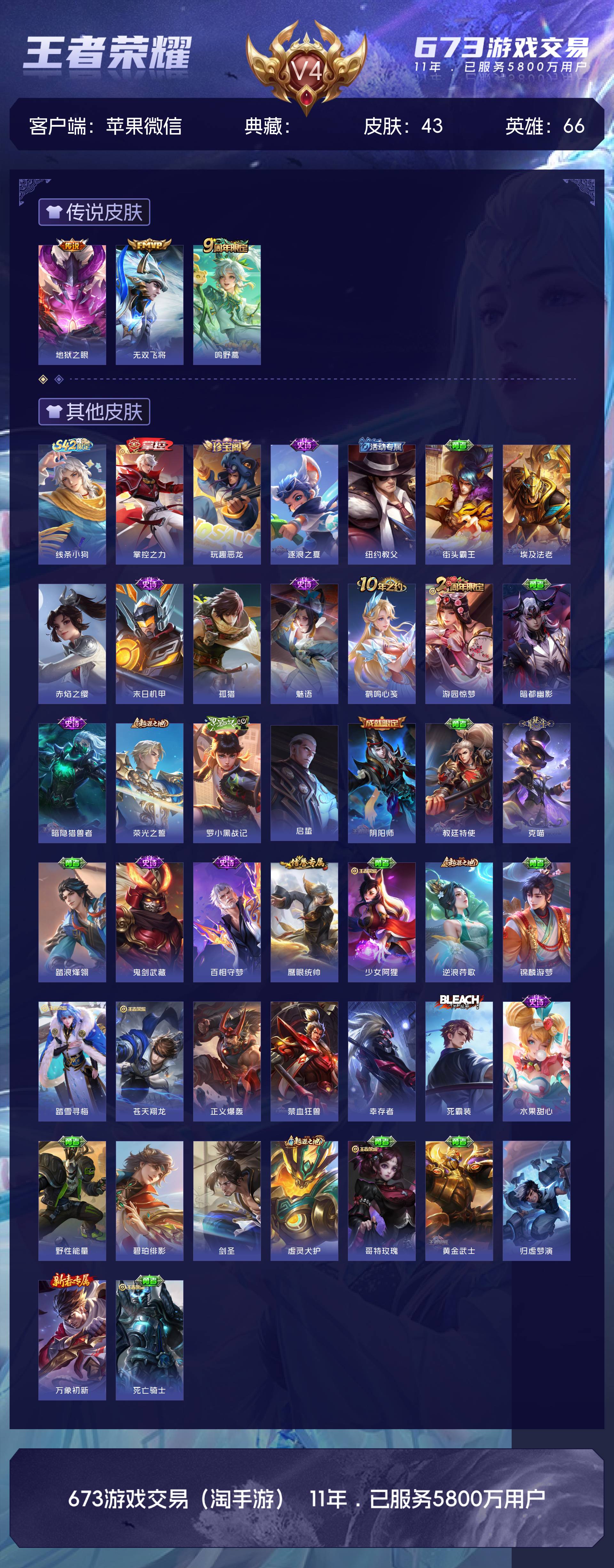 V4 皮肤43 英雄66 至尊星耀 星传说1 传说3 其他皮肤44