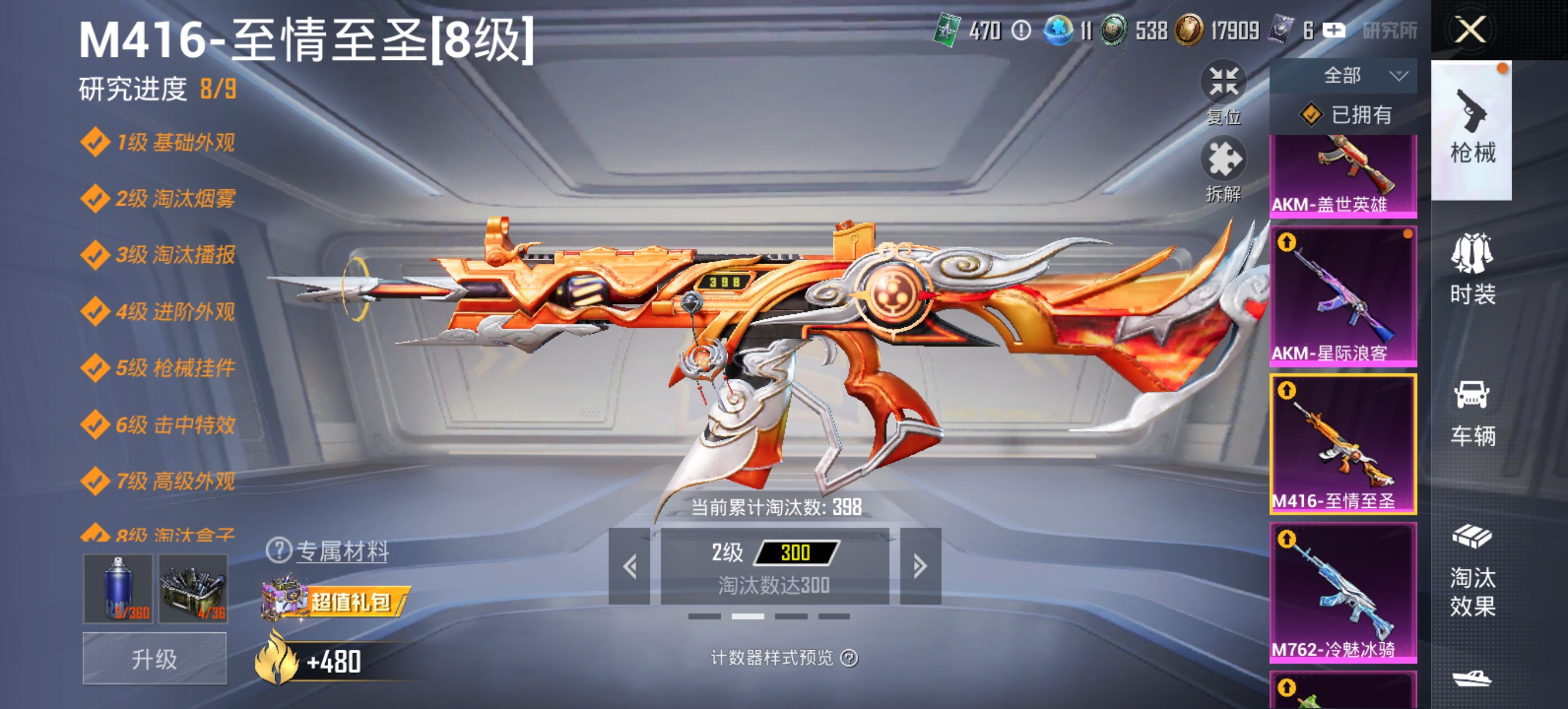 【3级红装白木乃伊 8级M4至情至圣AKM盖世英雄 双色螳螂32粉装20特效枪5
