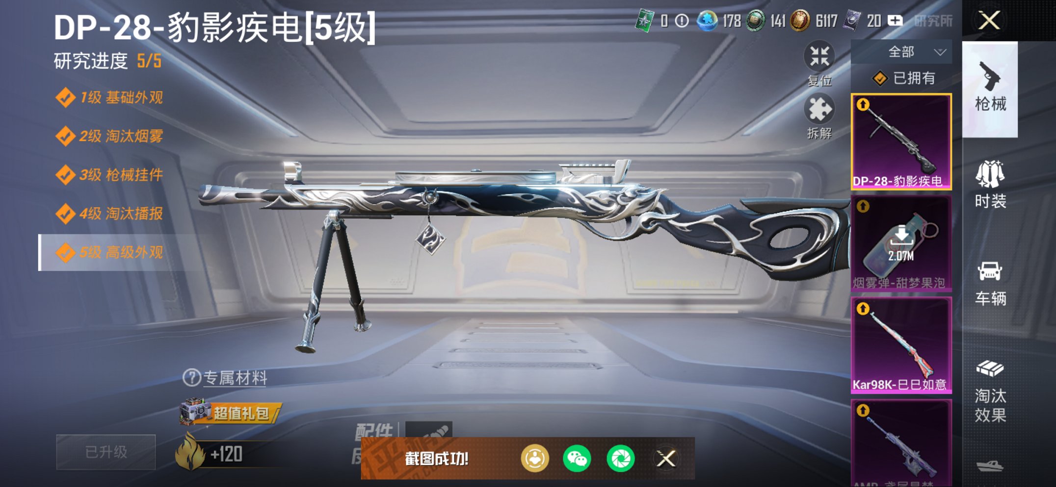 【5级图卡盟男女小丑3粉装9特效枪2载具身法素材号】 苹果V区-47827热力值-9印记-69套装-120枪皮 【1红装】 沙丘之主-图卡盟(5级)【2载具】 虚妄之影(炫耀紫) 星梦玉骢【3粉装】 怪诞乔克(小丑) 狂魅哈莉(小丑女) 恐龙拽拽【9特效枪】 M24-镜域双华(2级) P90-沙丘之主(3级) SCAR-L-锦绣绵绵(5级) 平底锅-林间仙鹿(3级) AMR-鸢尾晶梦(7级) 烟雾弹-甜梦果泡(5级) Kar98K-巳巳如意(5级) M416-电玩时刻(5级) DP-28-豹影疾
