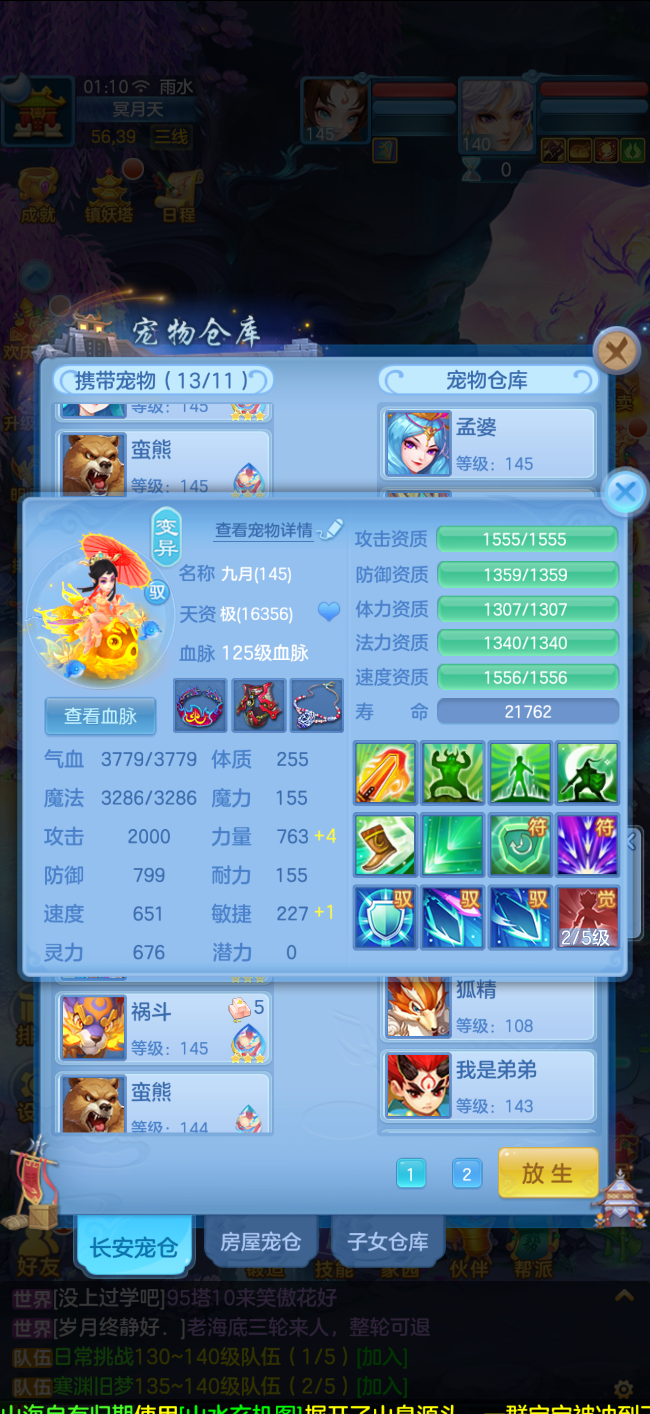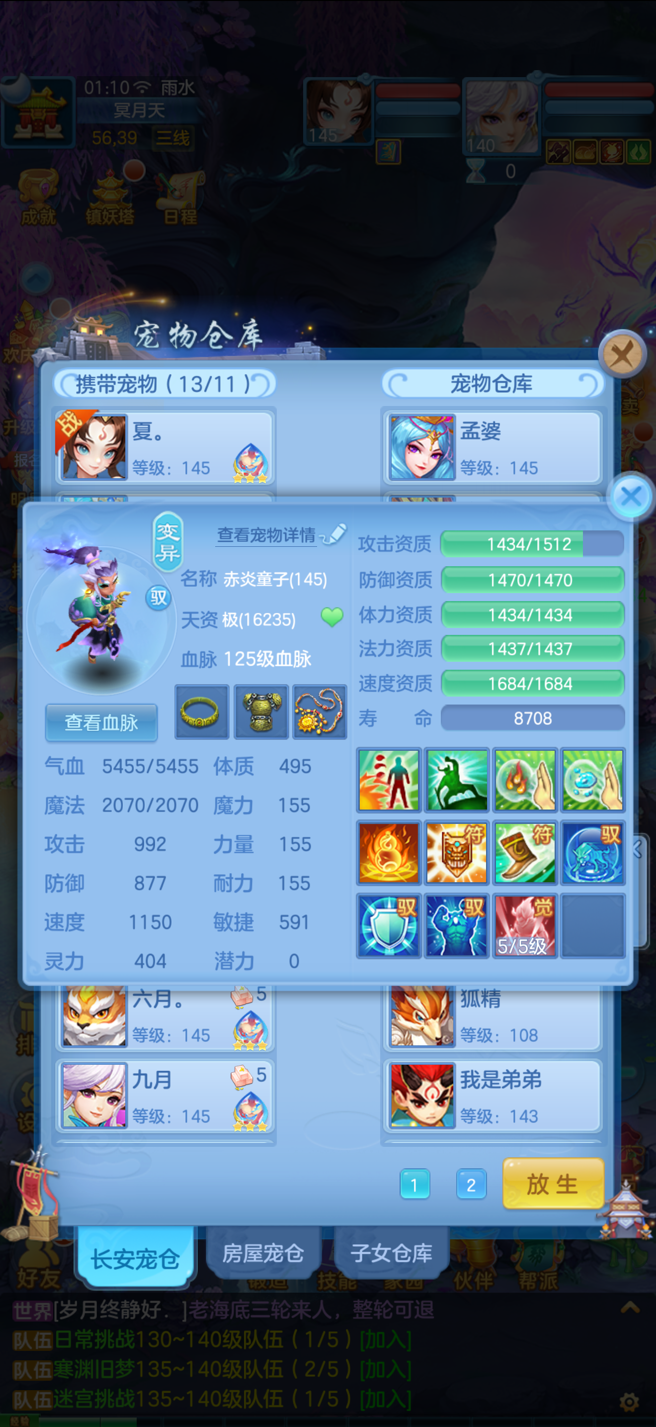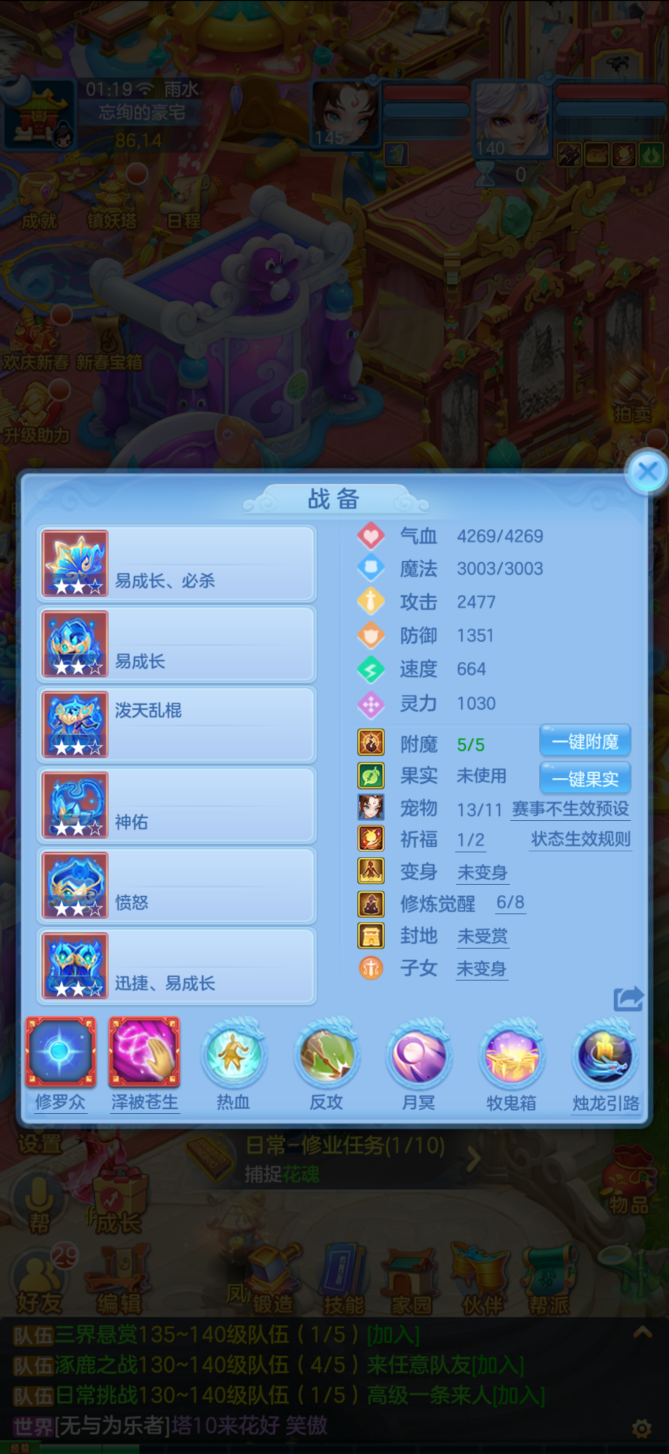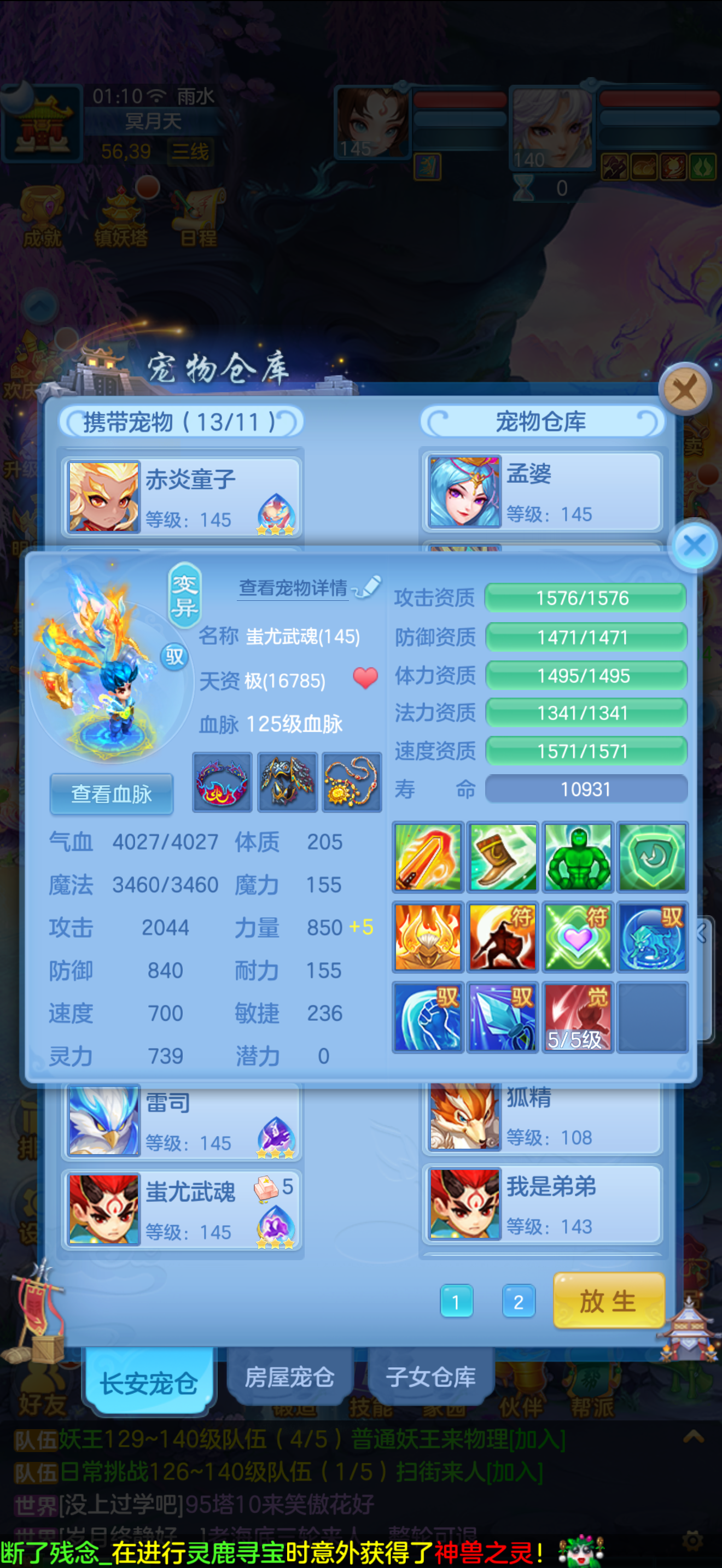 1个神兽,10个6技能,13个特殊5技能,满强身满修