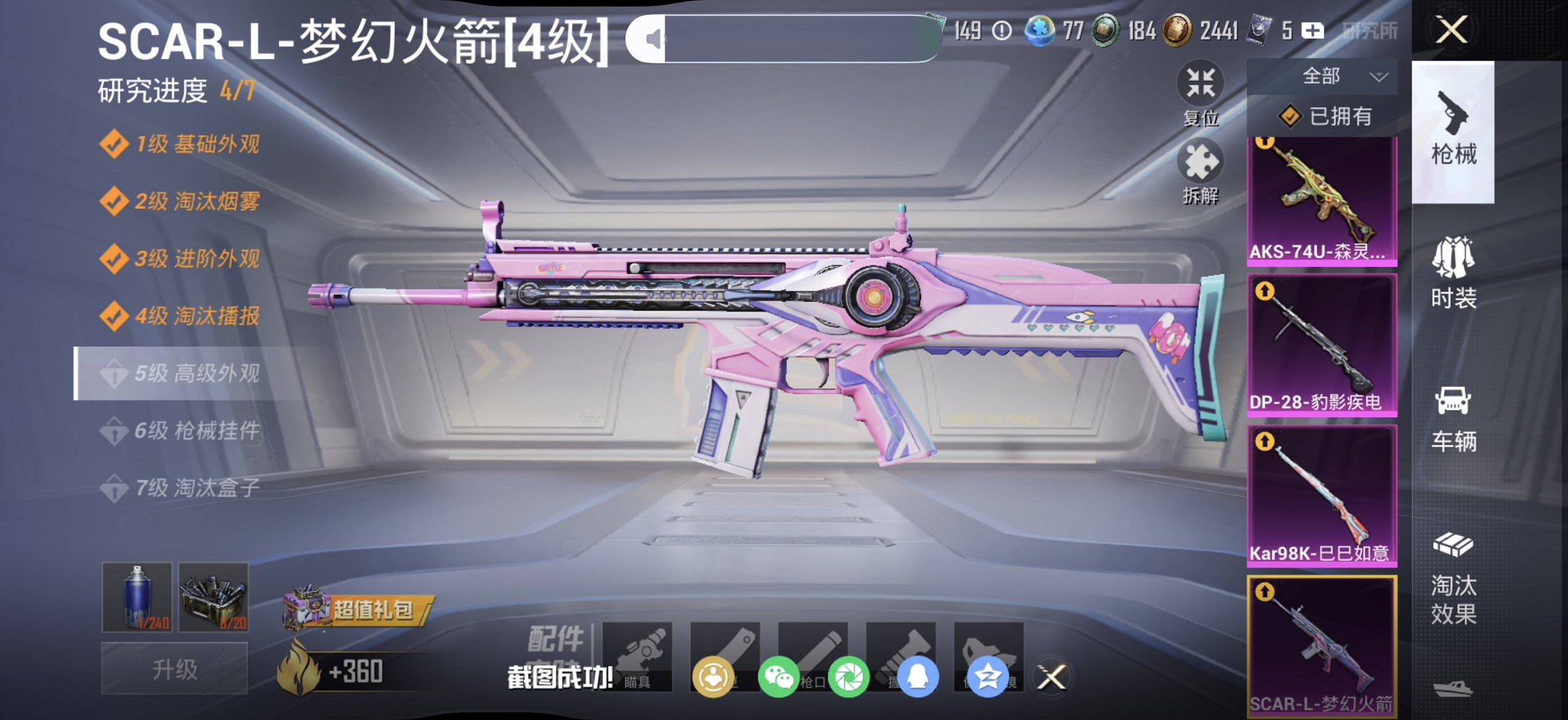 可二次实名【女号4级红装6粉装4特效枪1载具 秒换绑不用等】 苹果Q区-61541热力值-8印记-144套装-181枪皮 【1红装】 辉羽雀灵-初翊(4级)【1载具】 双人摩托梦幻火箭【1稀有】 Mark.06蓝螳螂【6粉装】 梦幻火箭 第五大道 角色-绯穹魔姬 星穹咏叹调 角色-花灵 角色-千金淑猫【4特效枪】 AKS-74U-森灵之息(5级) SCAR-L-梦幻火箭(4级) Kar98K-巳巳如意(5级) DP-28-豹影疾电(5级)【201热门】 鹰眼刺客 破蛋小黄鸡 深海小丑鱼 白色伏地