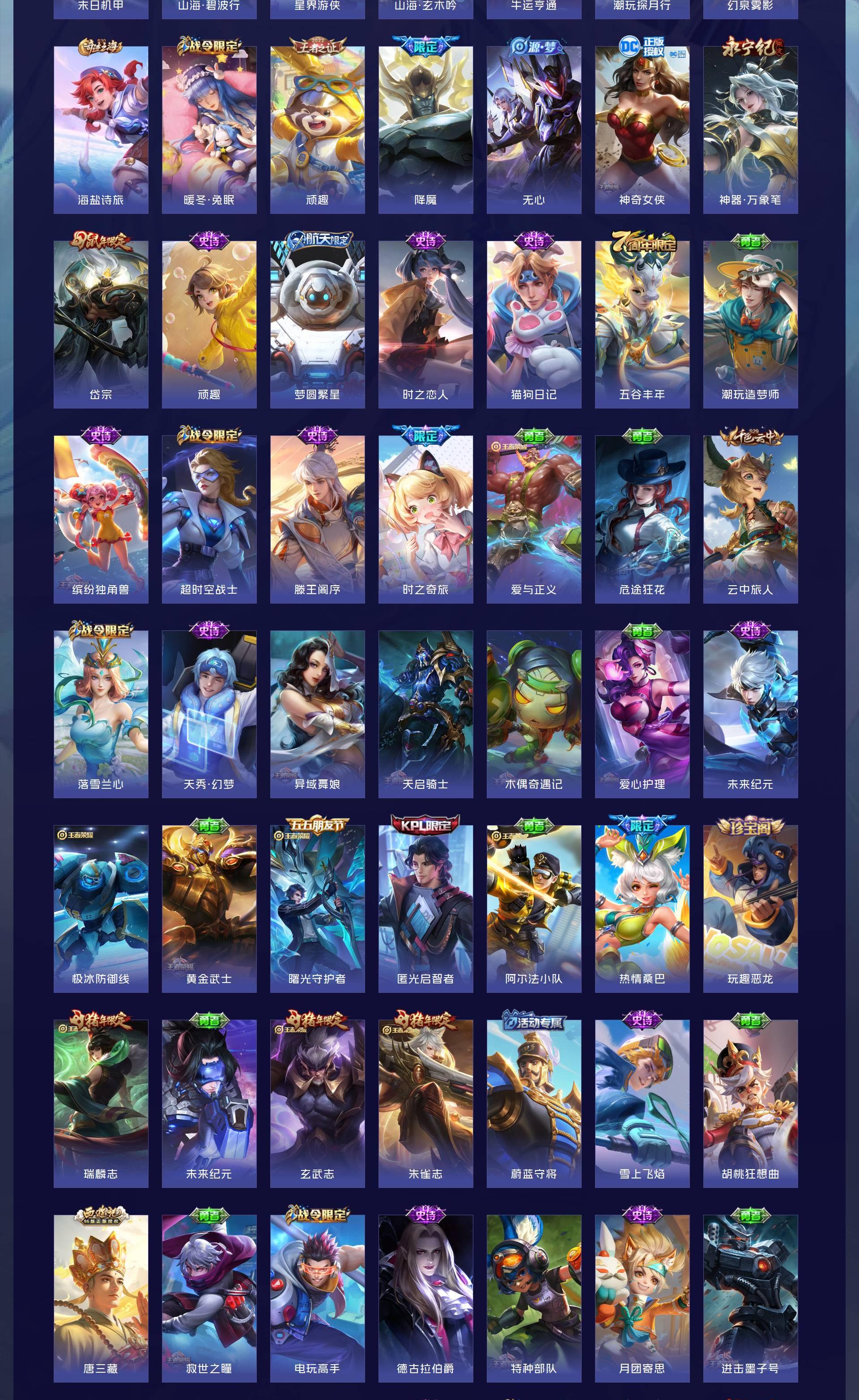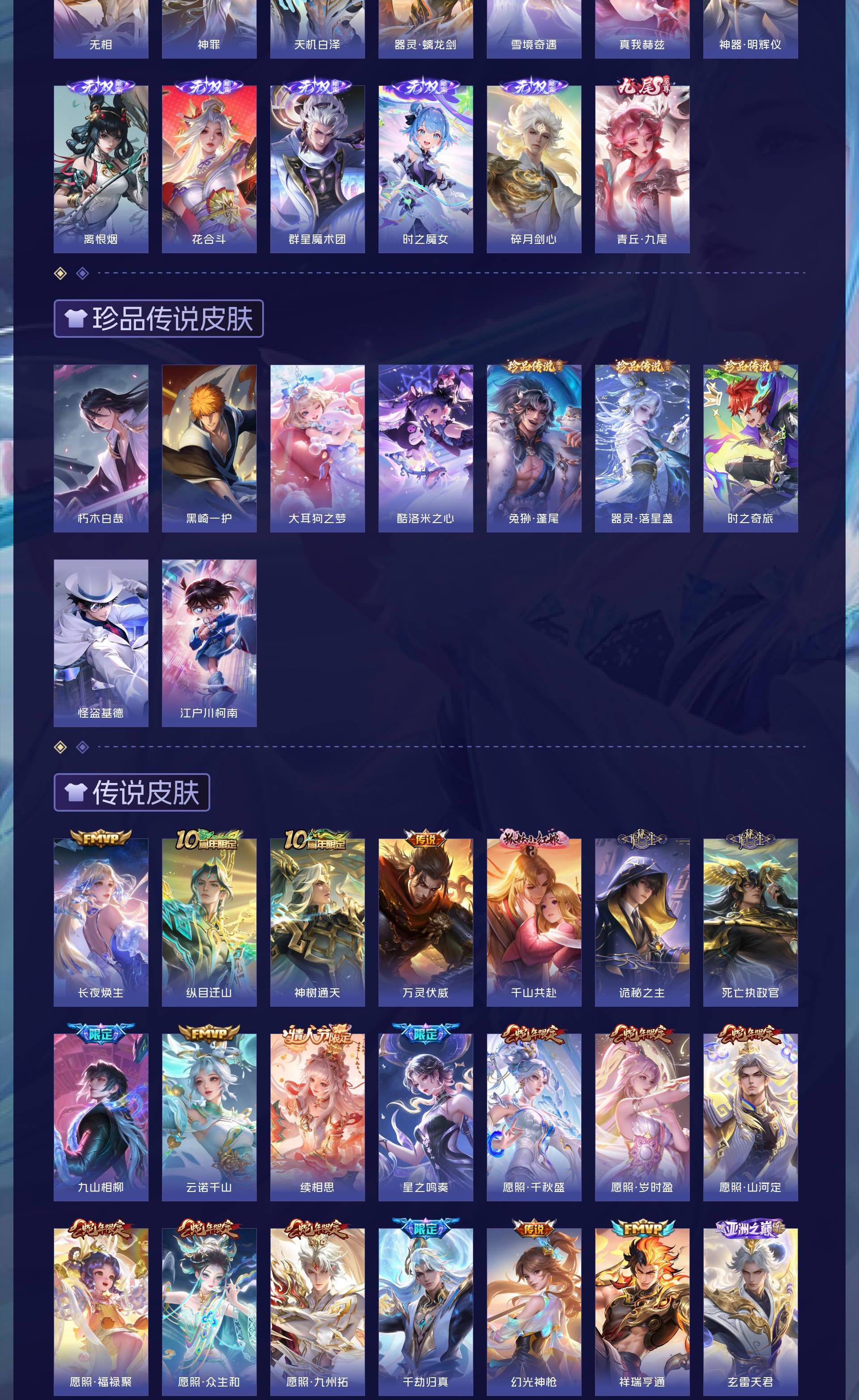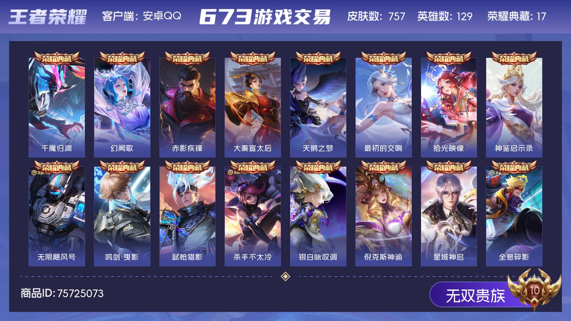 无双贵族 皮肤757 英雄129 最强王者 荣耀典藏17 珍品无双1 无双皮肤13 珍品传说9 传说129 其他皮肤578