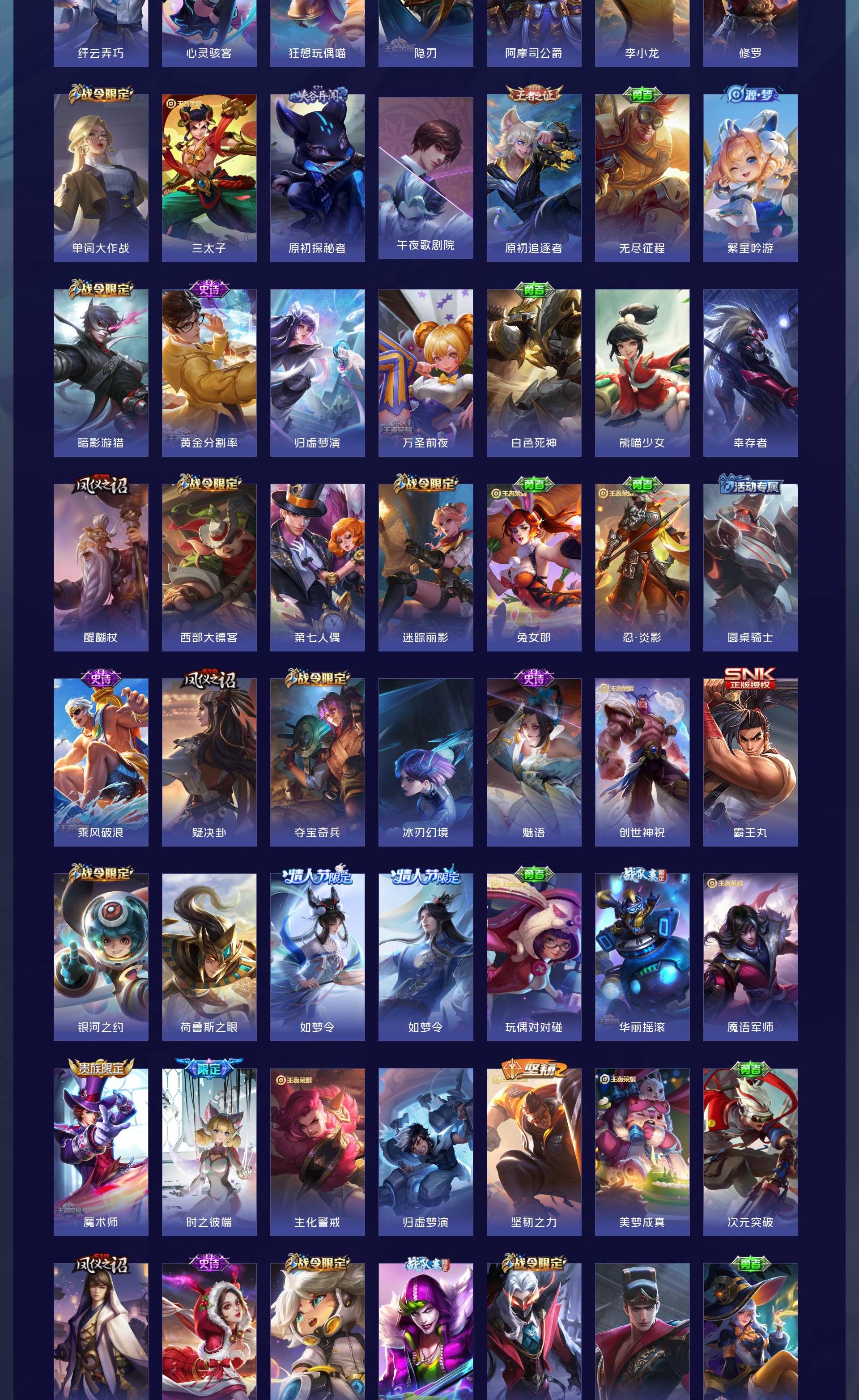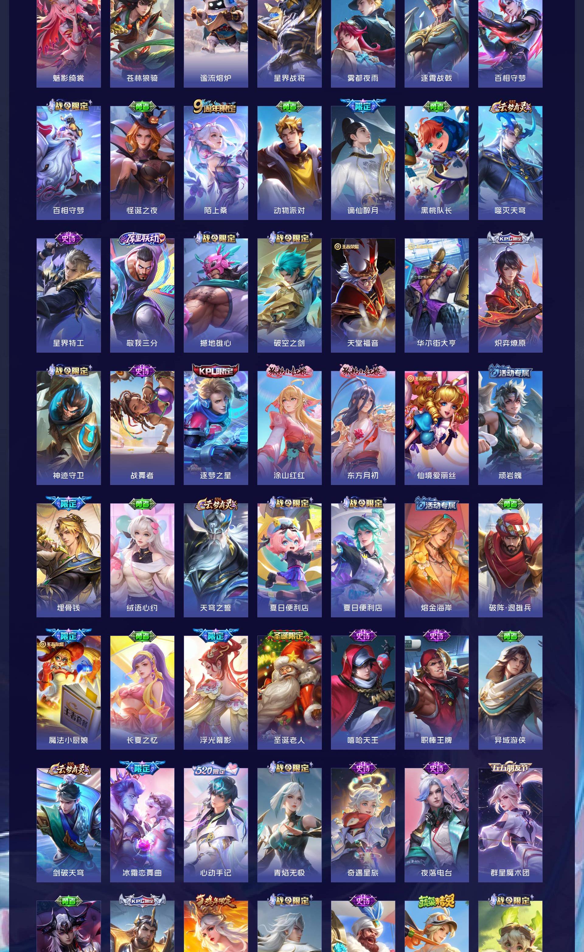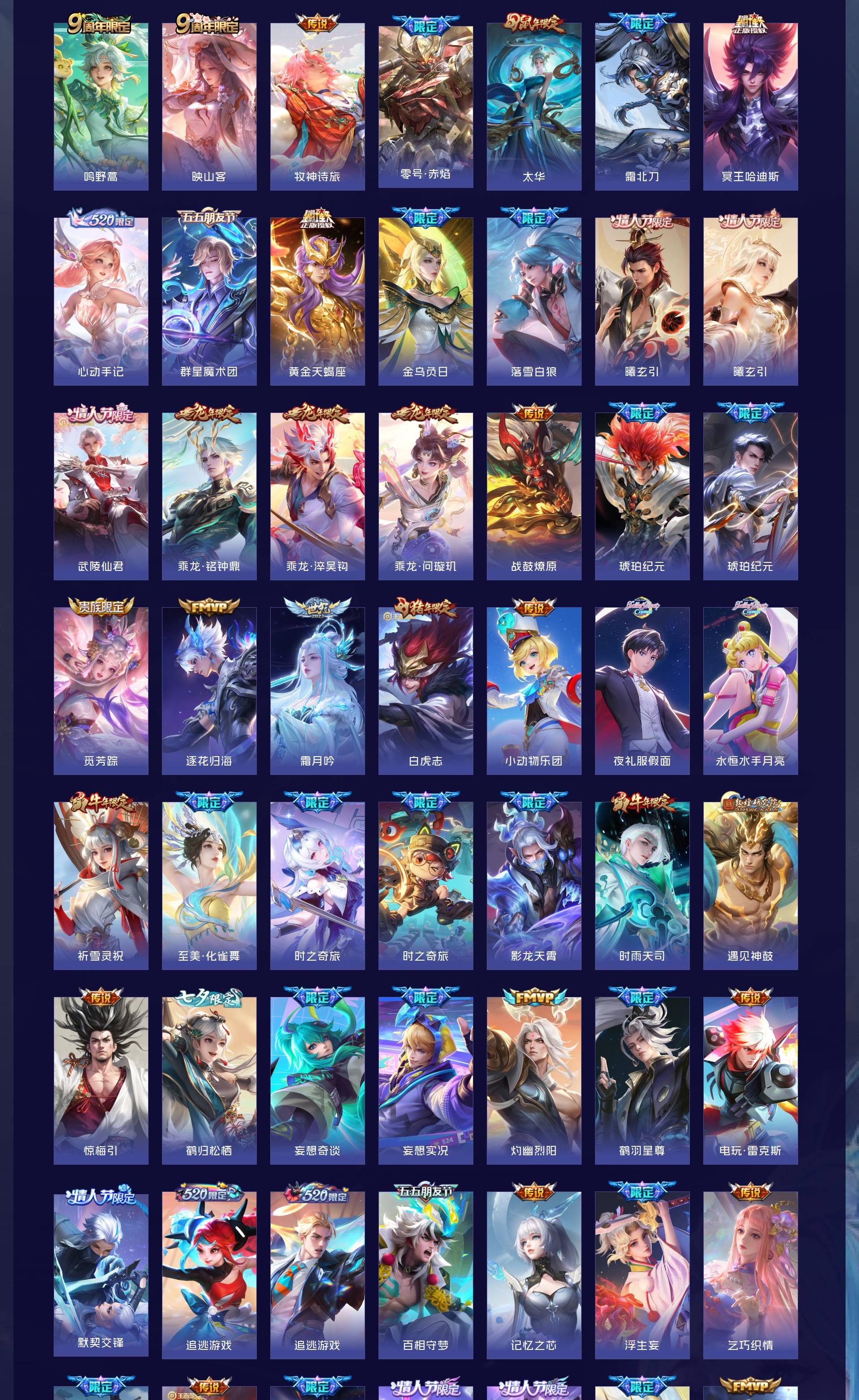 无双贵族 皮肤757 英雄129 最强王者 荣耀典藏17 珍品无双1 无双皮肤13 珍品传说9 传说129 其他皮肤578