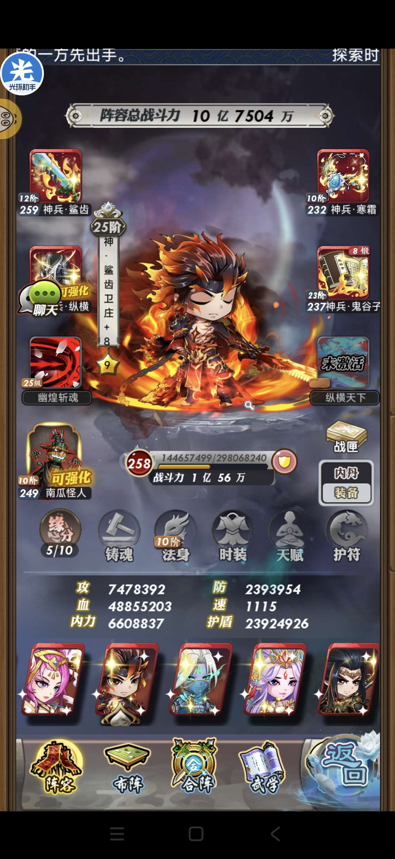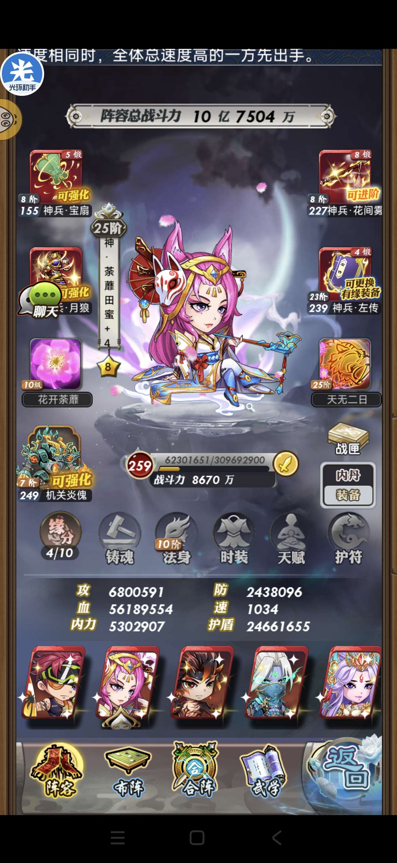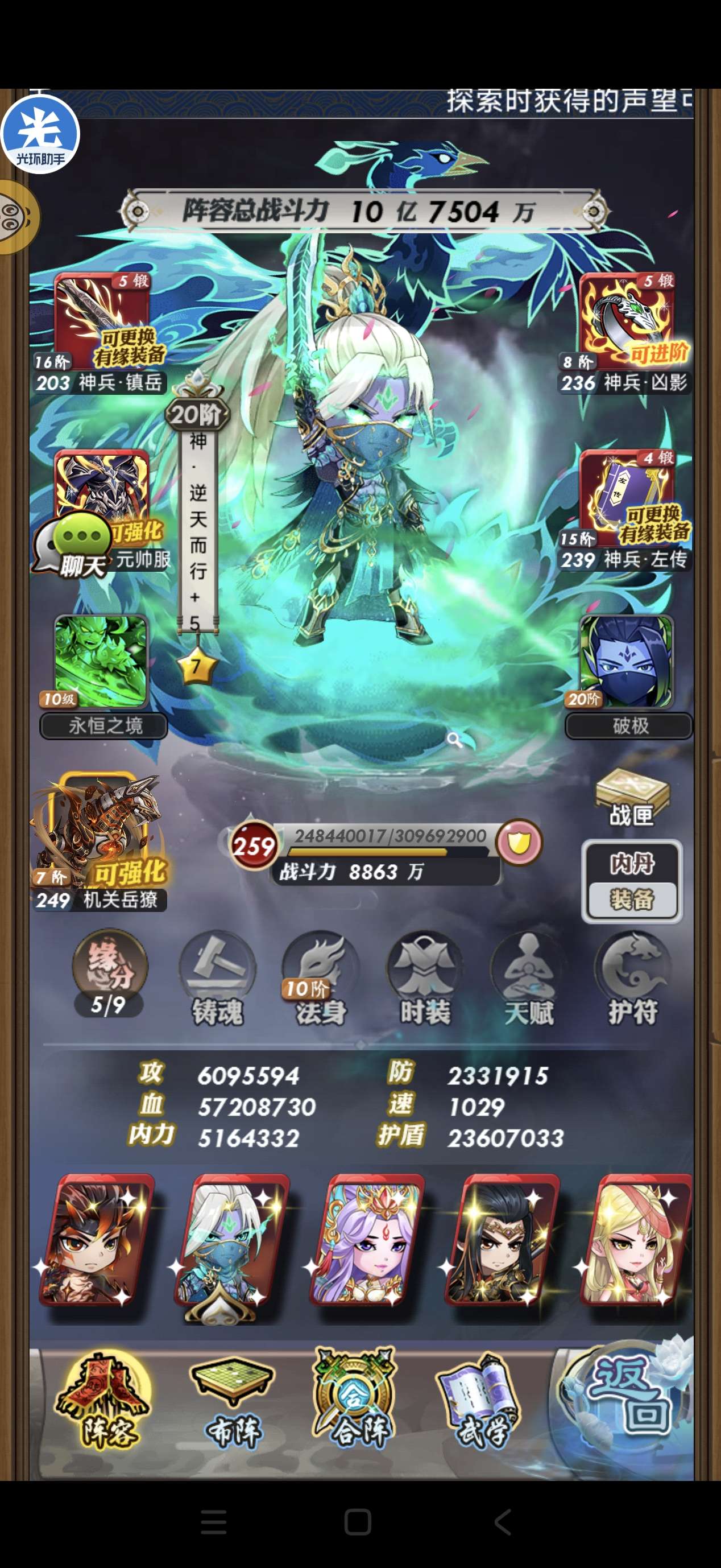 5神左,3神南华,3神吕,2神冥,1神封,1神鬼谷,神兵装备一堆19武器12铠甲14首饰14神书
