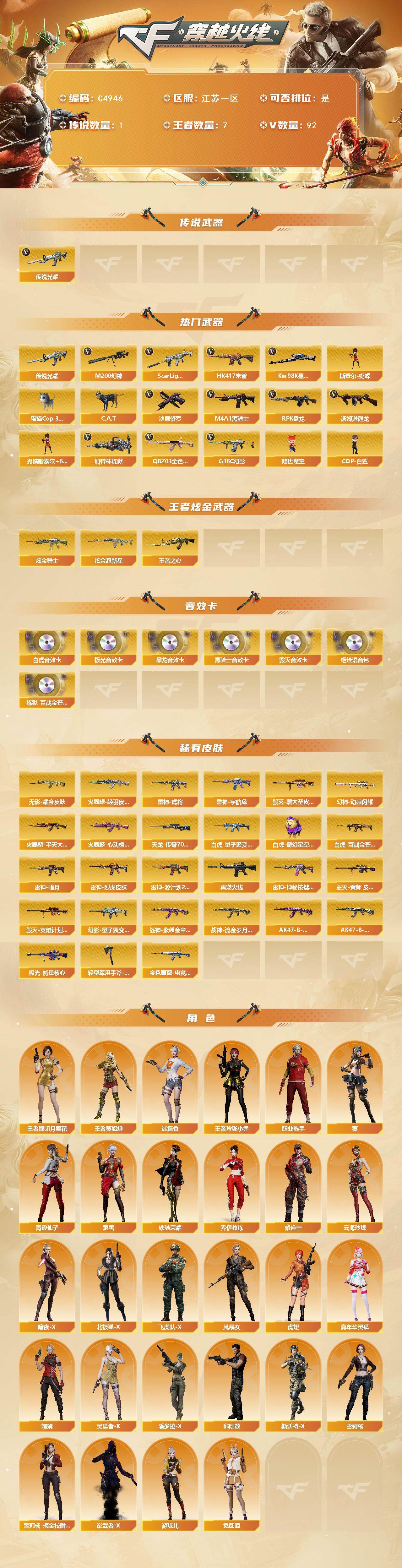 【C4946】江苏一区-98V-7王者武器数-2炫金武器数