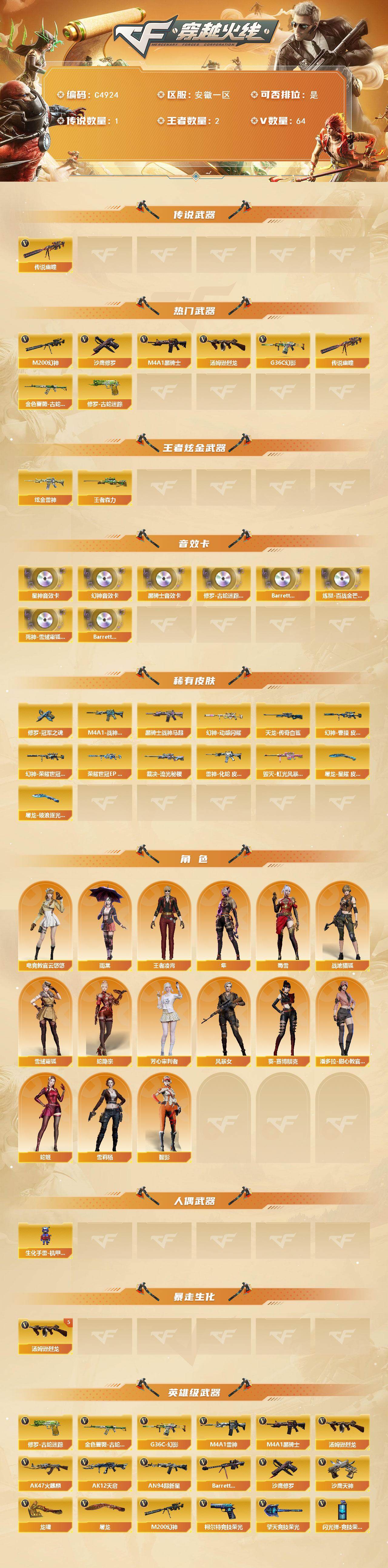 【C4924】安徽一区-60V-2王者武器数-1炫金武器数