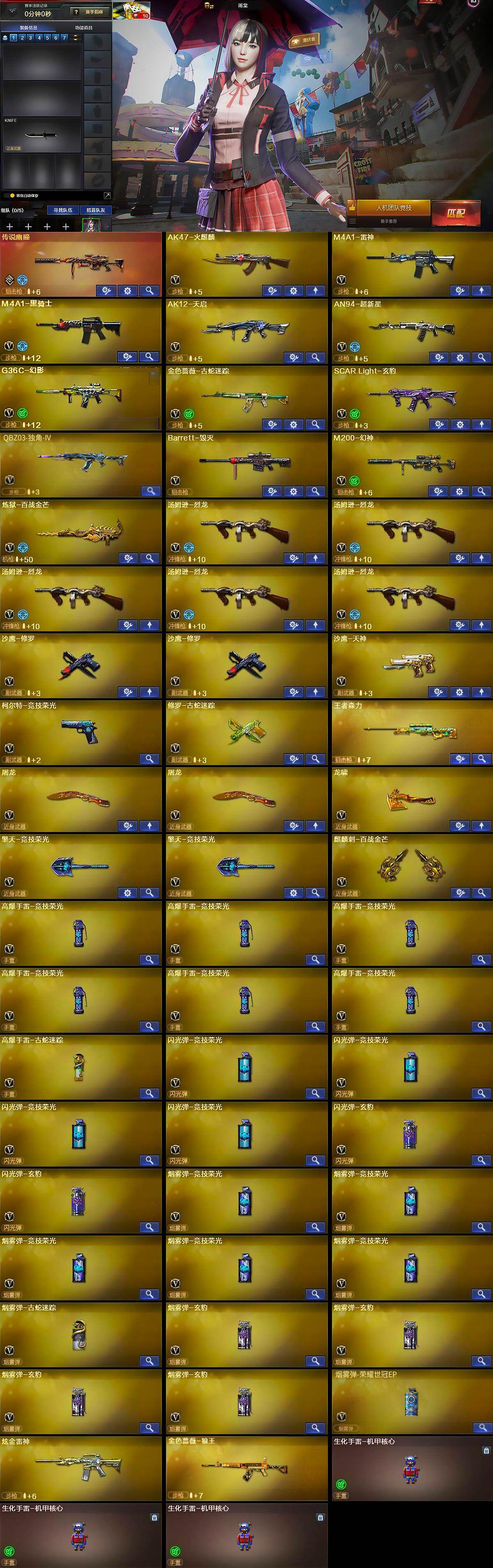 【热门武器】:传说幽瞳,G36C-幻影,M200-幻神,金色蔷薇-古蛇迷踪,修罗-古蛇迷踪,M4A1-黑骑士,汤姆逊-烈龙*5,沙鹰-修罗*2