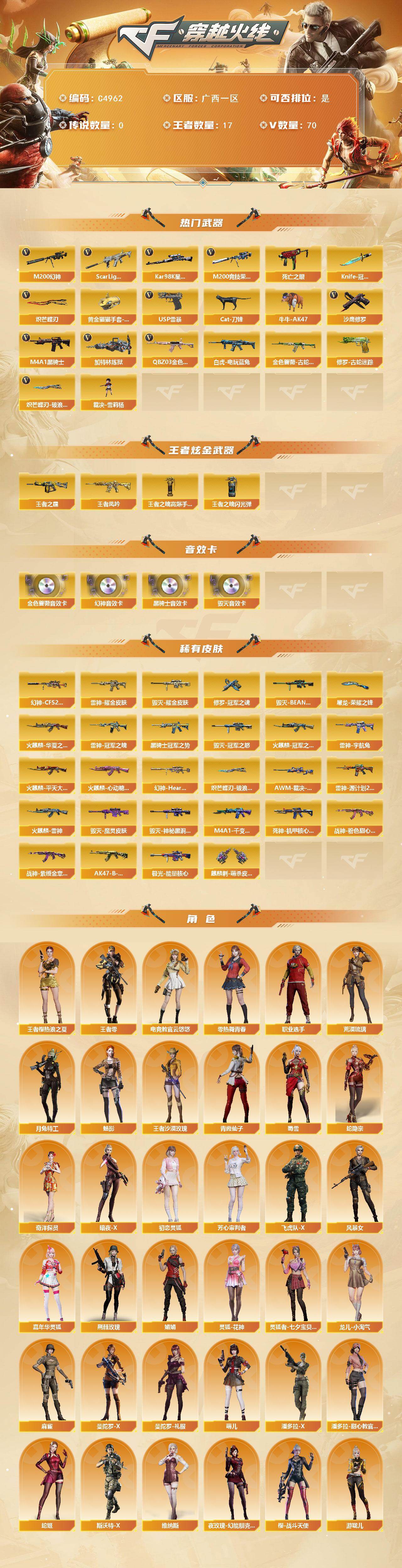 【C4962】广西一区-75V-17王者武器数-0炫金武器数