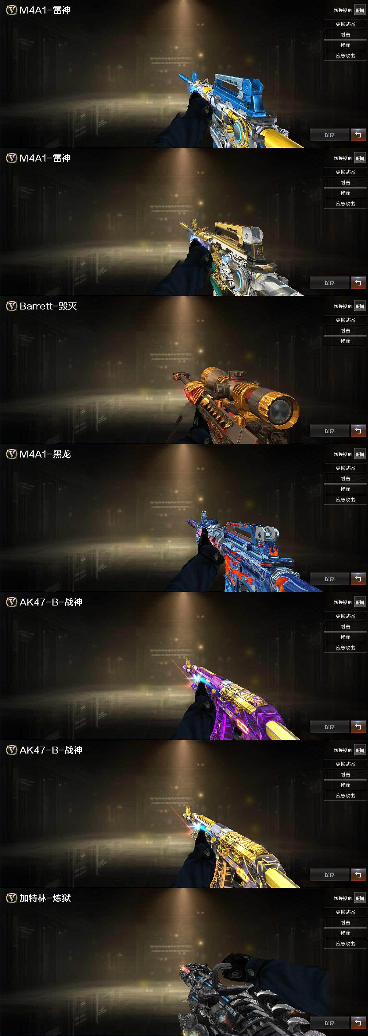 【热门武器】:M200-幻神,死亡之眼*2,牛牛-AK47,M4A1-黑骑士*2,汤姆逊-烈龙*6,加特林-炼狱,斯泰尔-蝴蝶,降世魔童,USP-雷暴,沙鹰-修罗*2