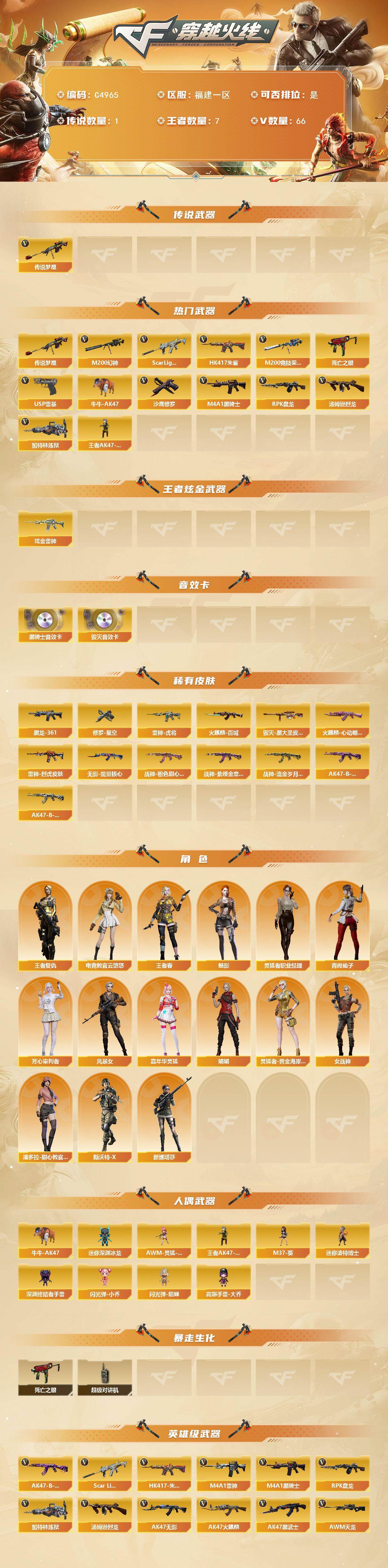 【C4965】福建一区-72V-7王者武器数-2炫金武器数
