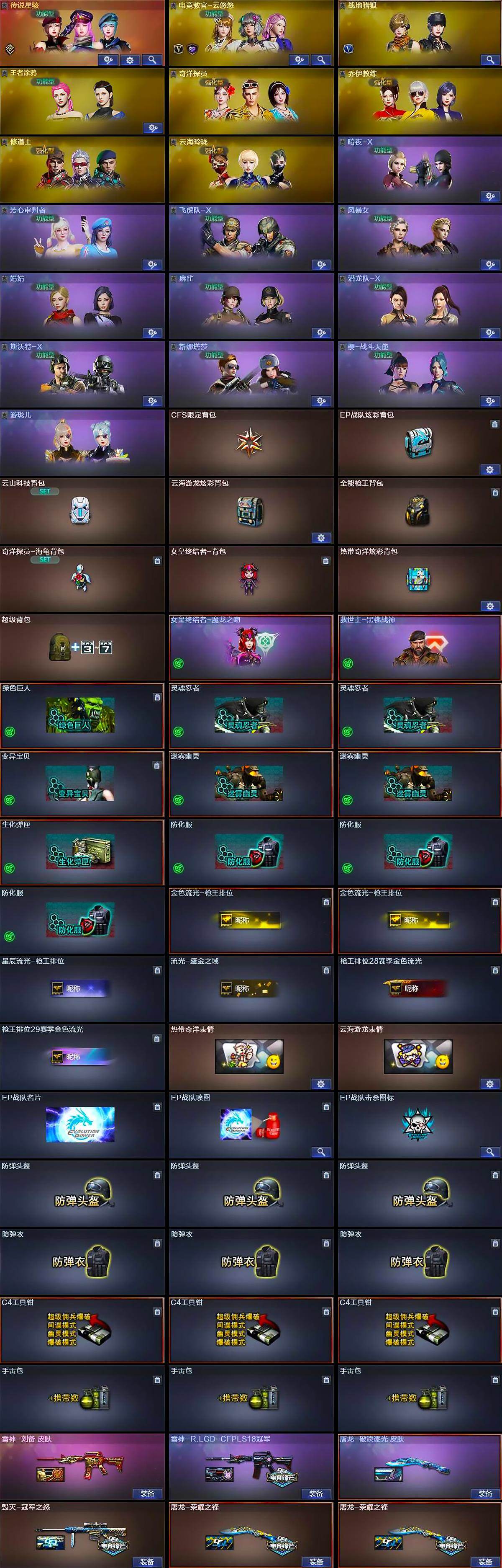 【角色】:电竞教官-云悠悠,战地猎狐,王者涂鸦,奇洋探员,乔伊教练,修道士,云海玲珑,暗夜-X,芳心审判者,飞虎队-X,风暴女,娟娟,麻雀,潜龙队-X,斯沃特-X,新娜塔莎,樱-战斗天使,游珑儿