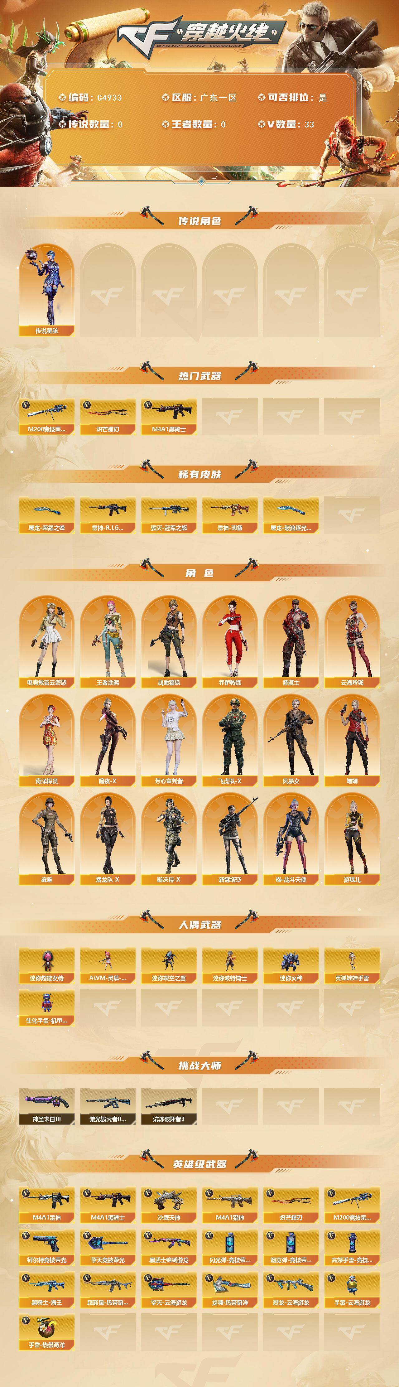 【C4933】广东一区-30V-0王者武器数-0炫金武器数