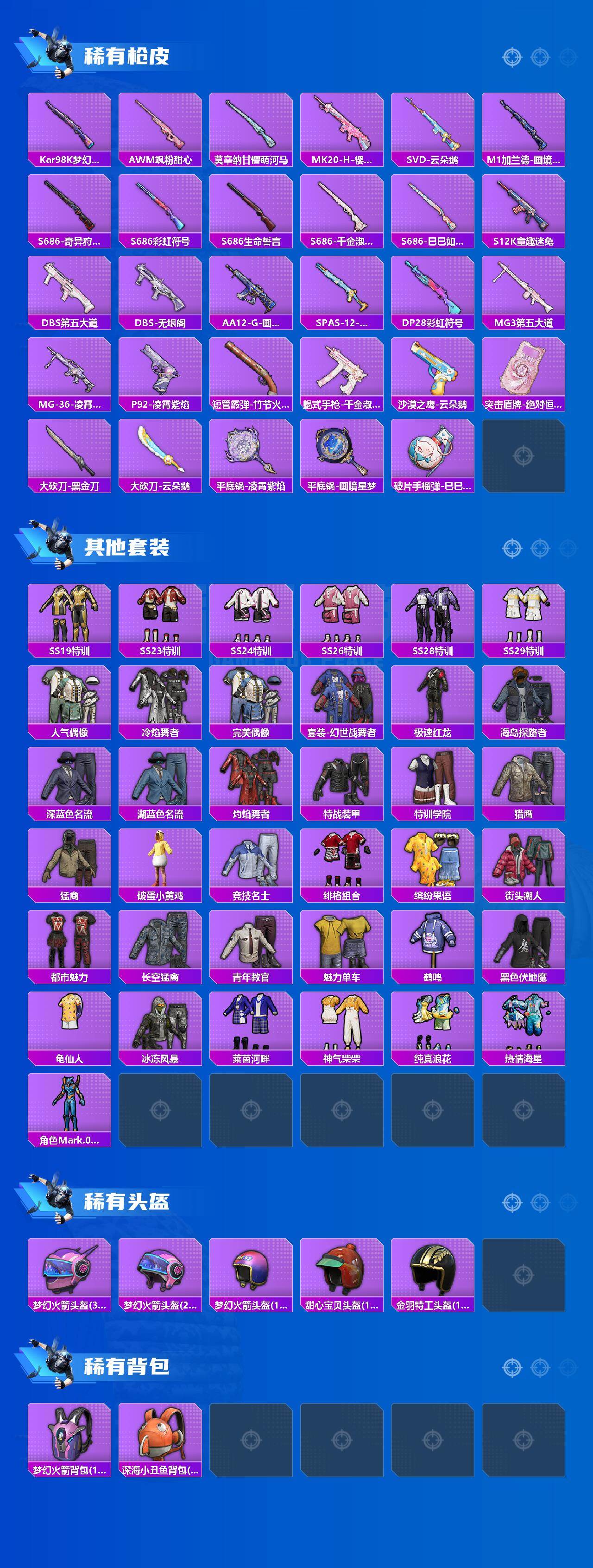 【A6945】苹果 【粉装-梦幻火箭/套装-小丑鱼/套装-龟仙人/角色-Mark/06/兰博基尼Estoque(银翼灰】手Q-无敌战神框-6粉装-4特效枪-1载具-3粉色飞行器-44079热力值-6王牌印记-101套装-144枪皮