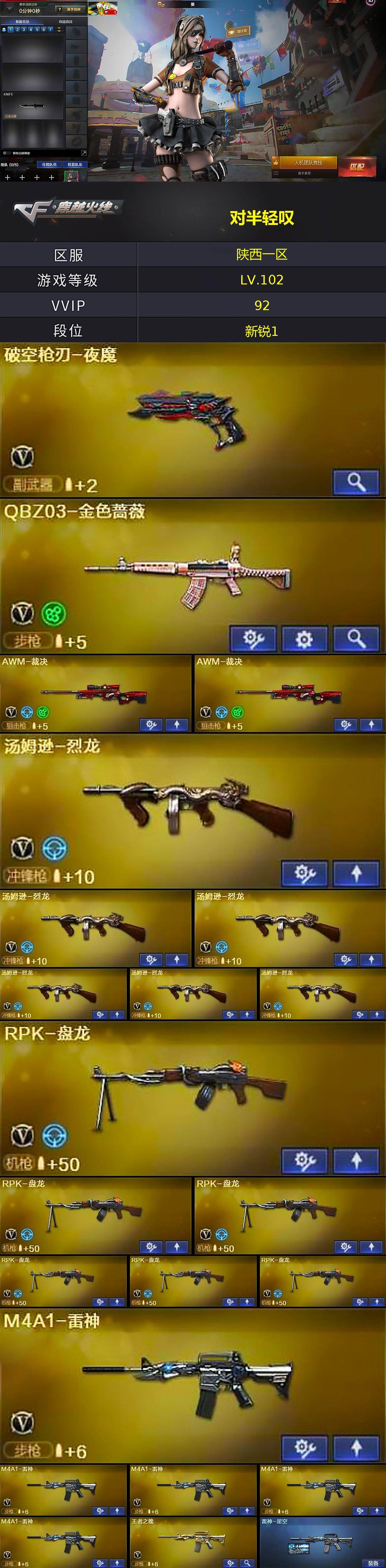 陕西一区-99V-12王者武器数-3炫金武器数