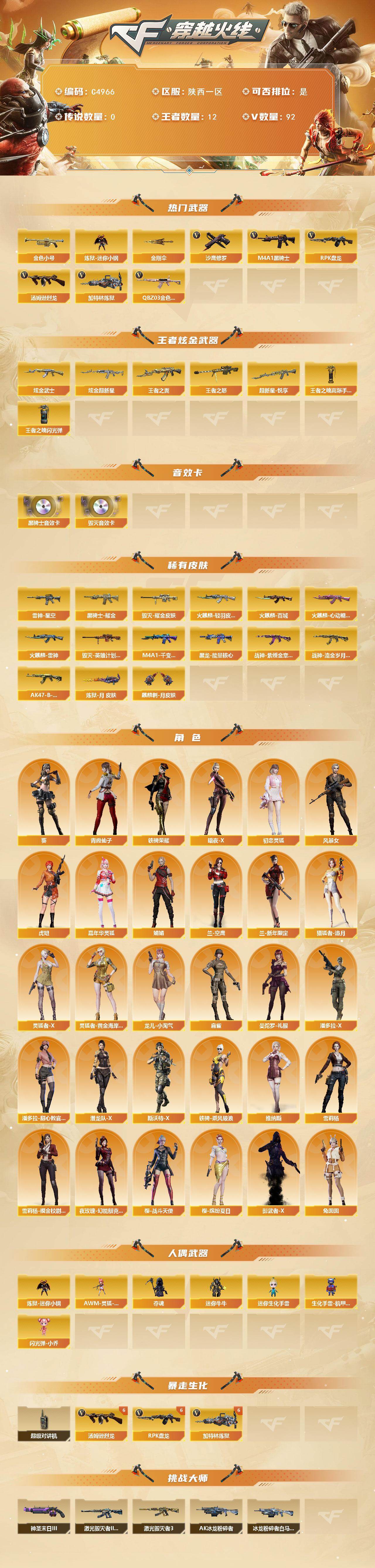 【C4966】陕西一区-99V-12王者武器数-3炫金武器数